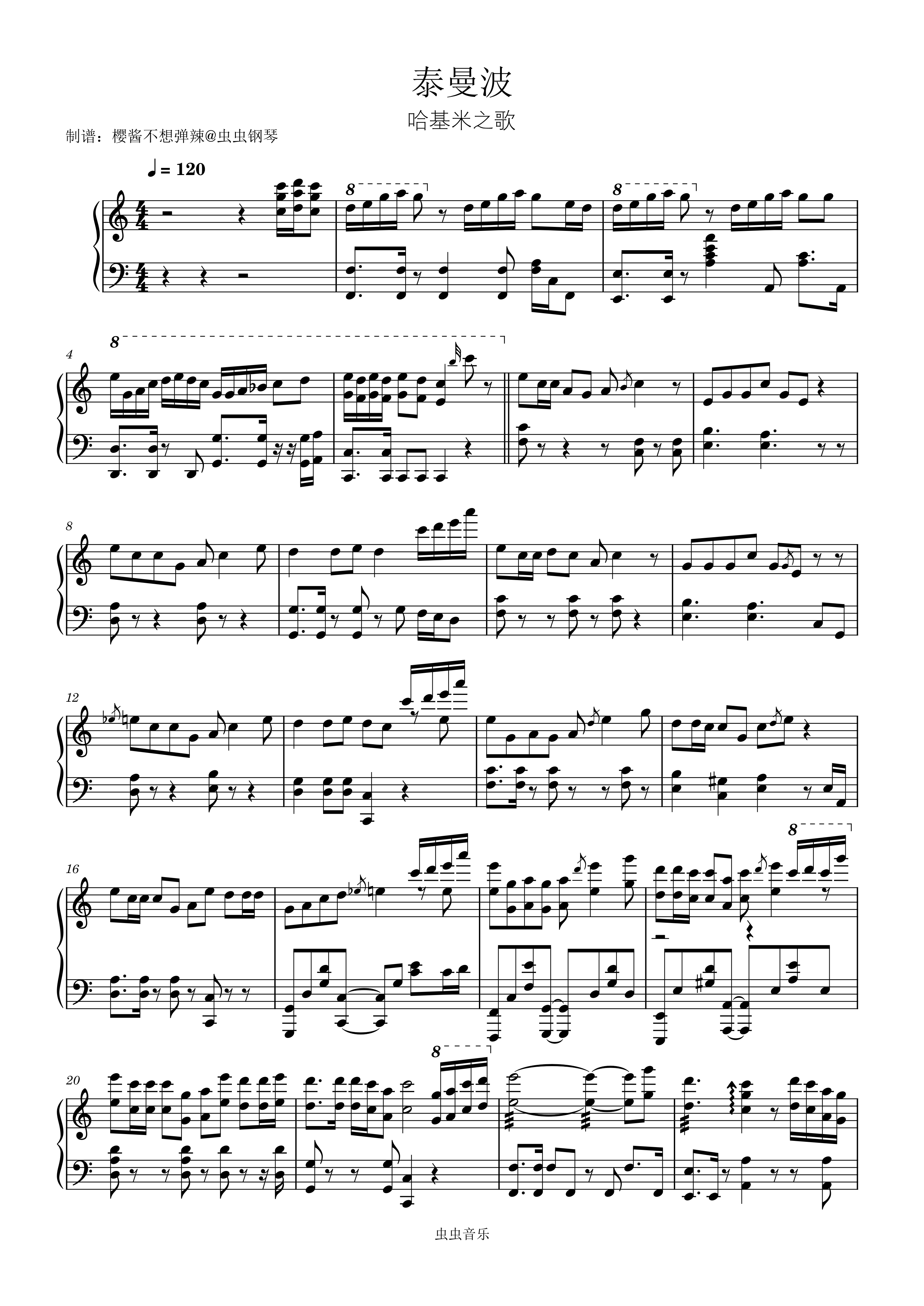 钢琴谱:泰曼波 哈基米之歌 C大调