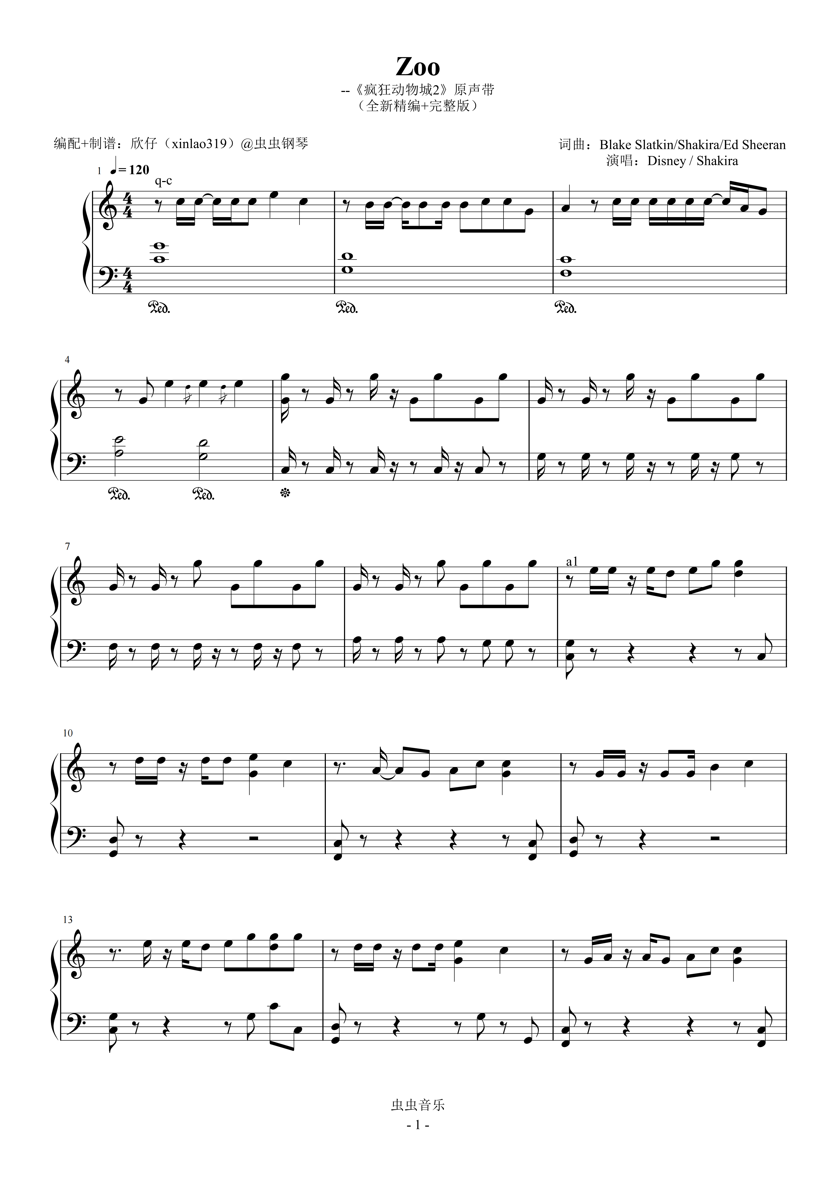 钢琴谱:Zoo(C、《疯狂动物城2》原声带、完整版)
