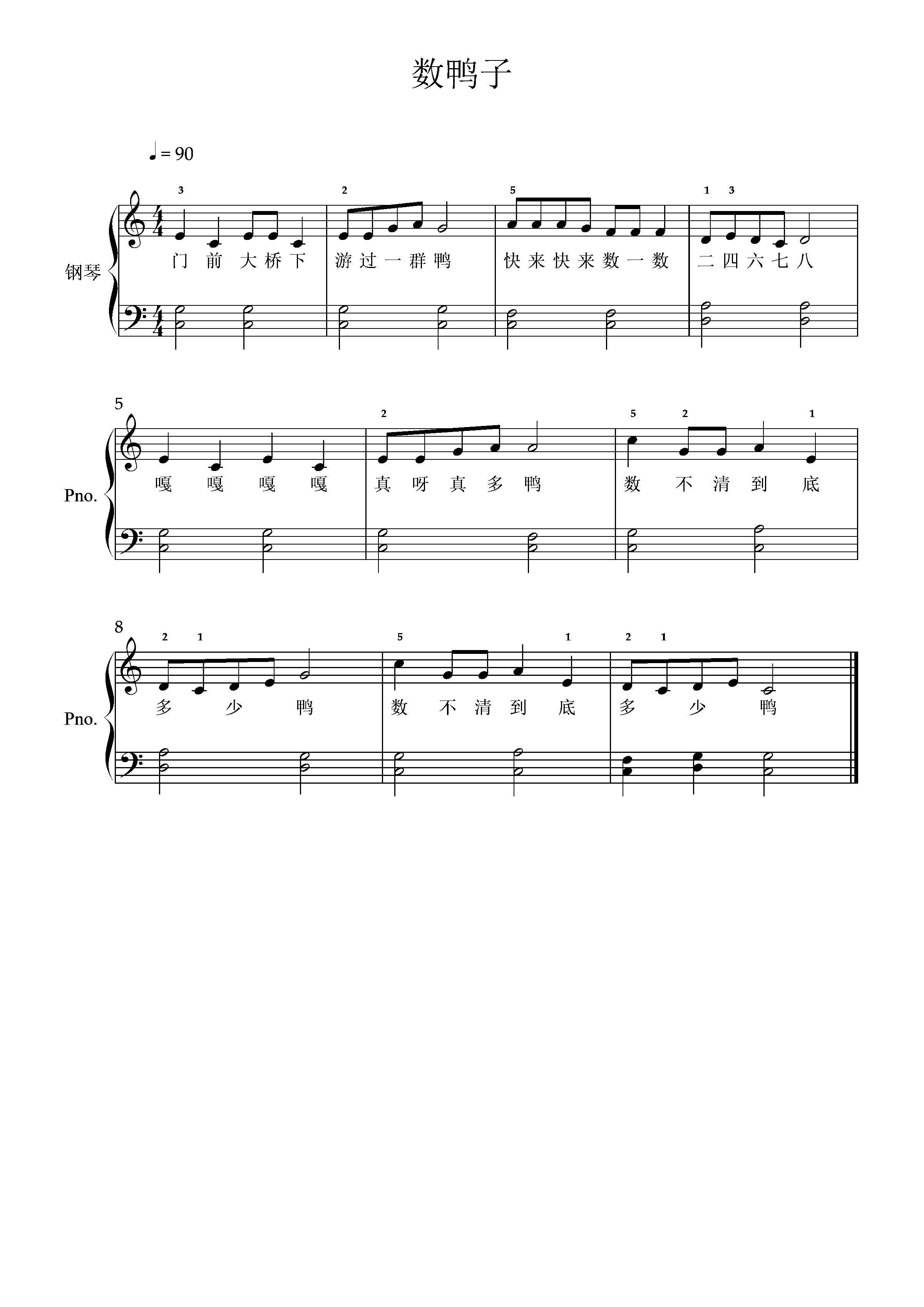 • 32.数鸭子钢琴简谱 C调 数字双手 王嘉祯