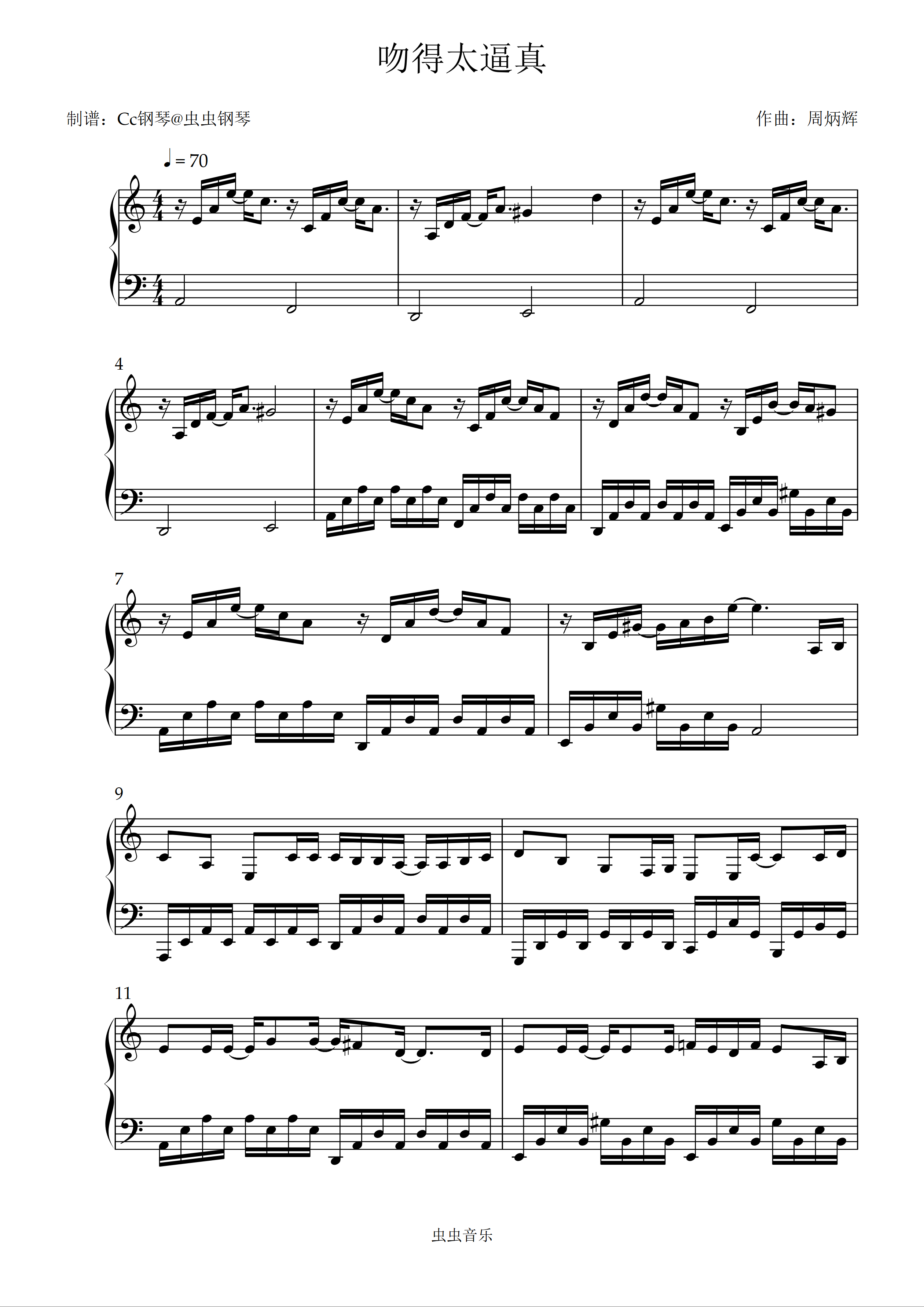 钢琴谱:吻得太逼真 C调 好听易上手