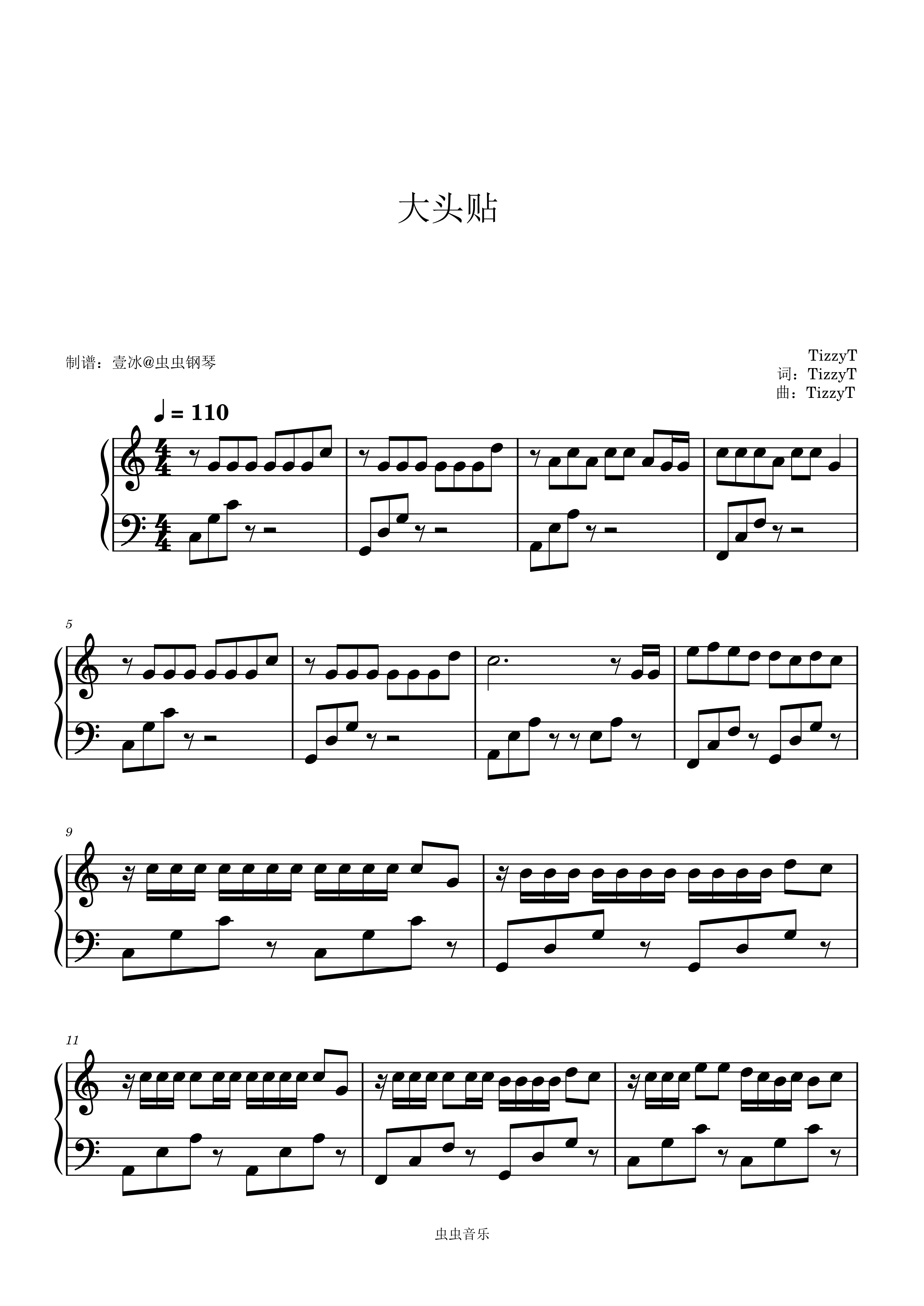 • 大头儿子小头爸爸钢琴简谱 C调 数字双手 东动