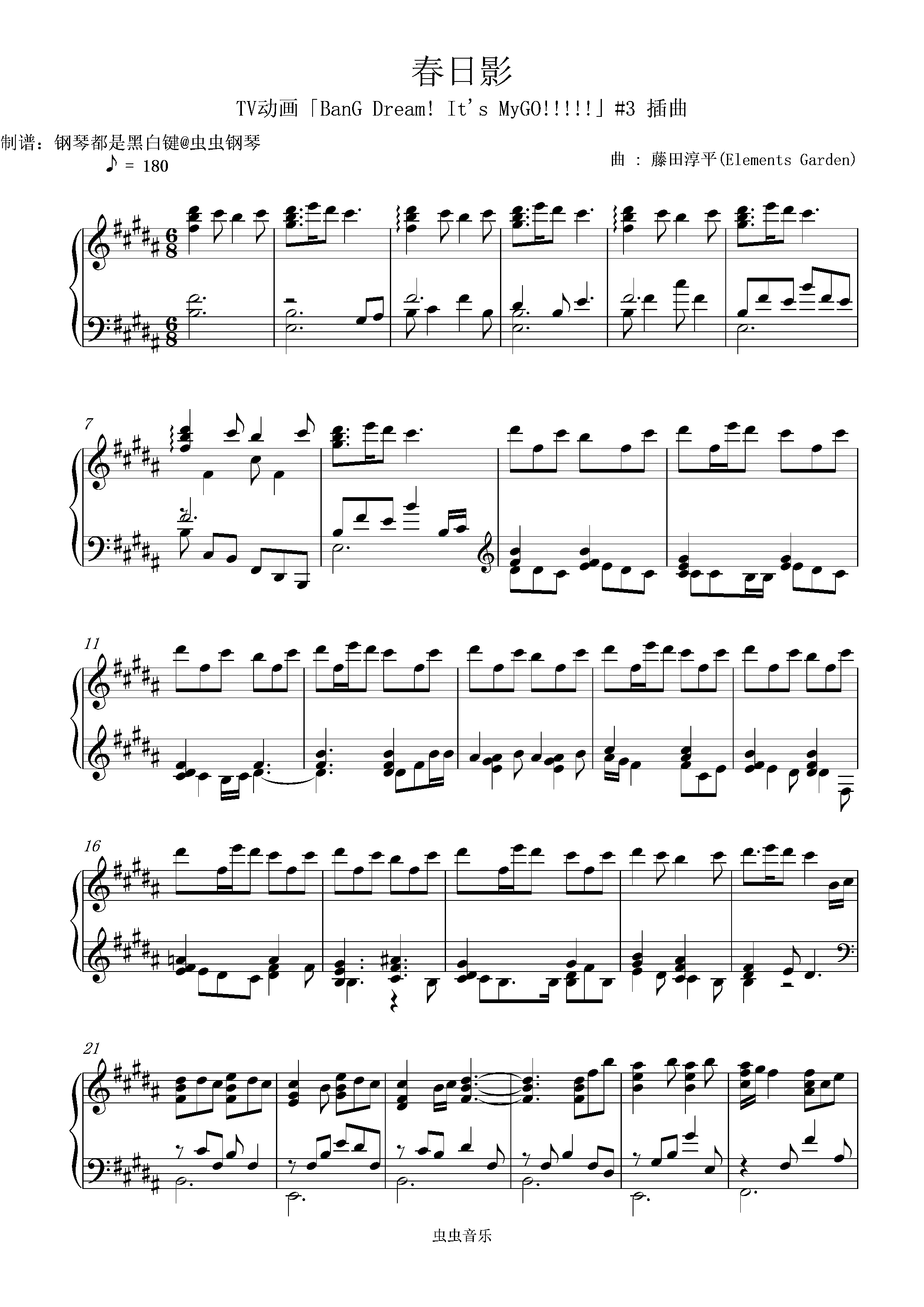 钢琴谱:「春日影」《BanG Dream! Ave Mujica》插曲
