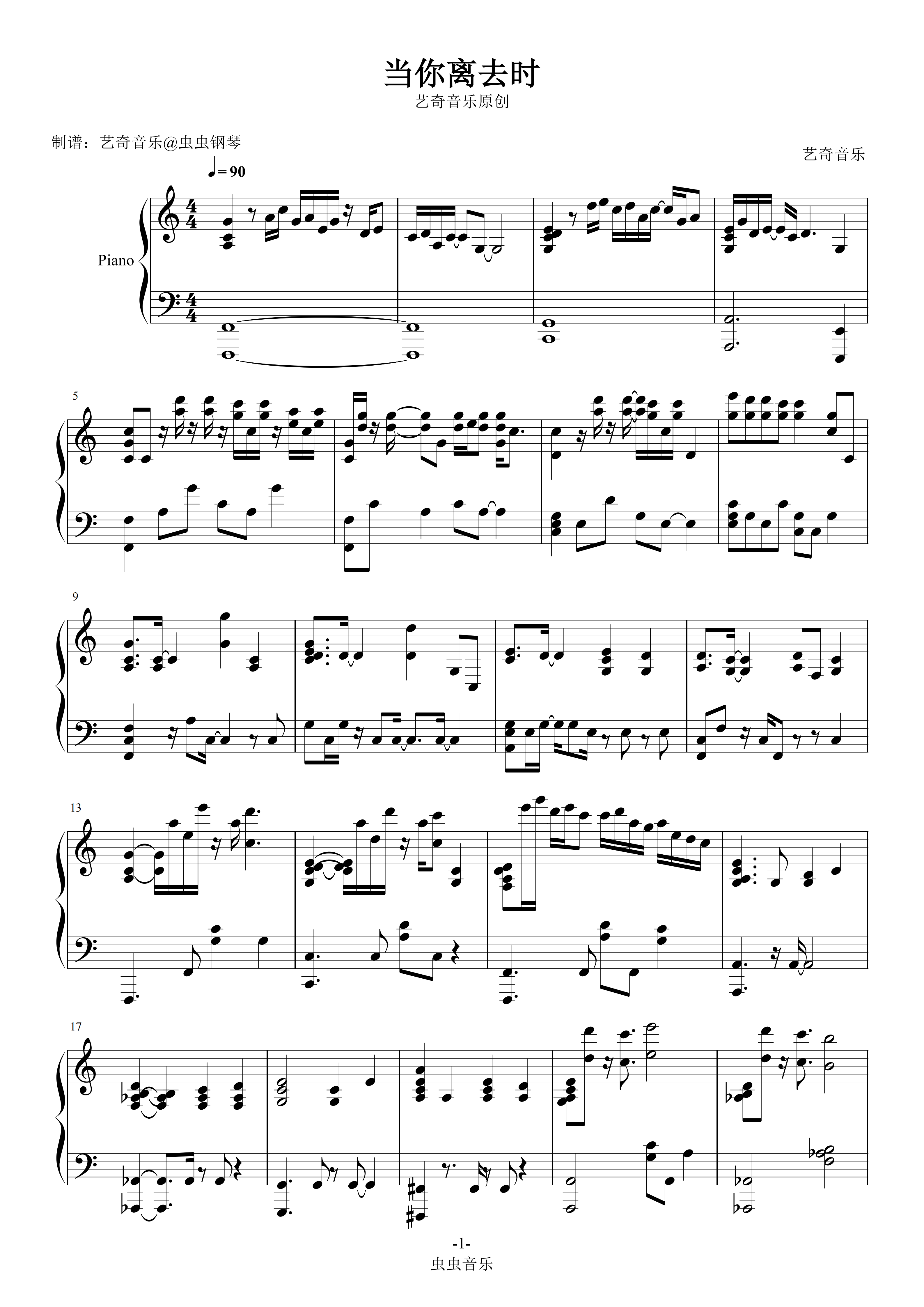 • 你从未离去钢琴简谱 C调 数字双手 万秦/崔铁志