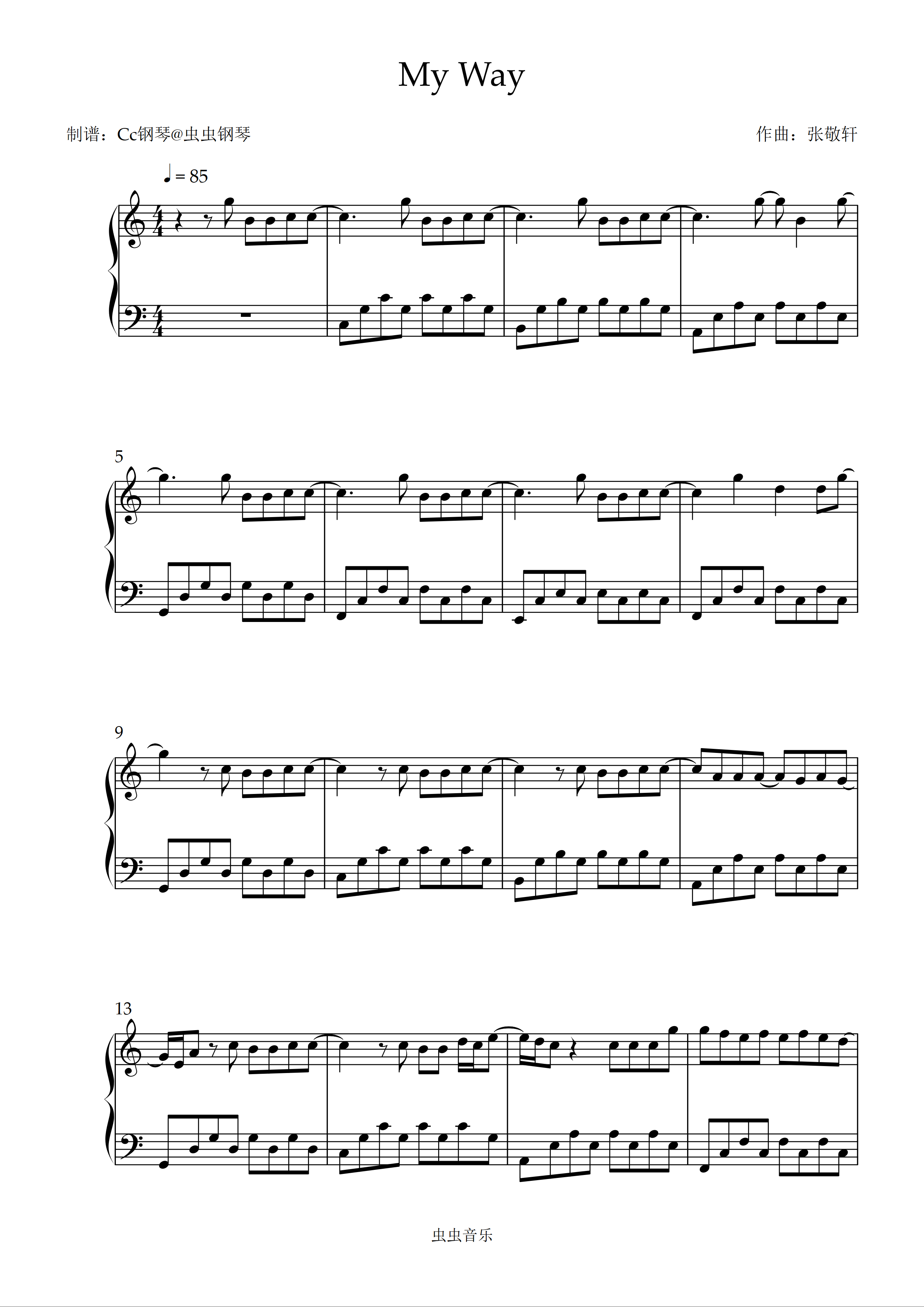 • On My Way钢琴简谱 C调 数字双手 萨吉