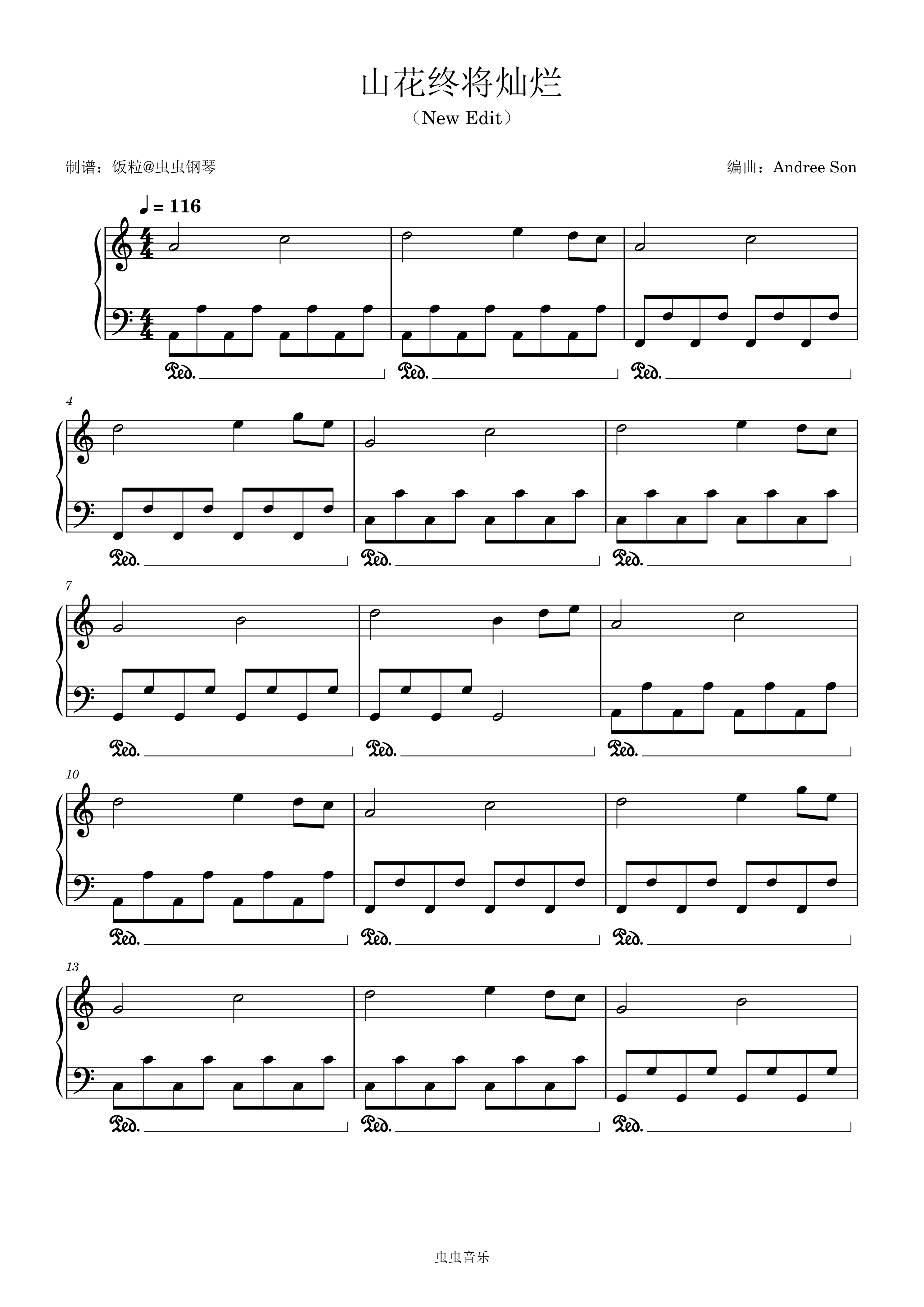 钢琴谱:山花终将灿烂(New Edit)片段—C调
