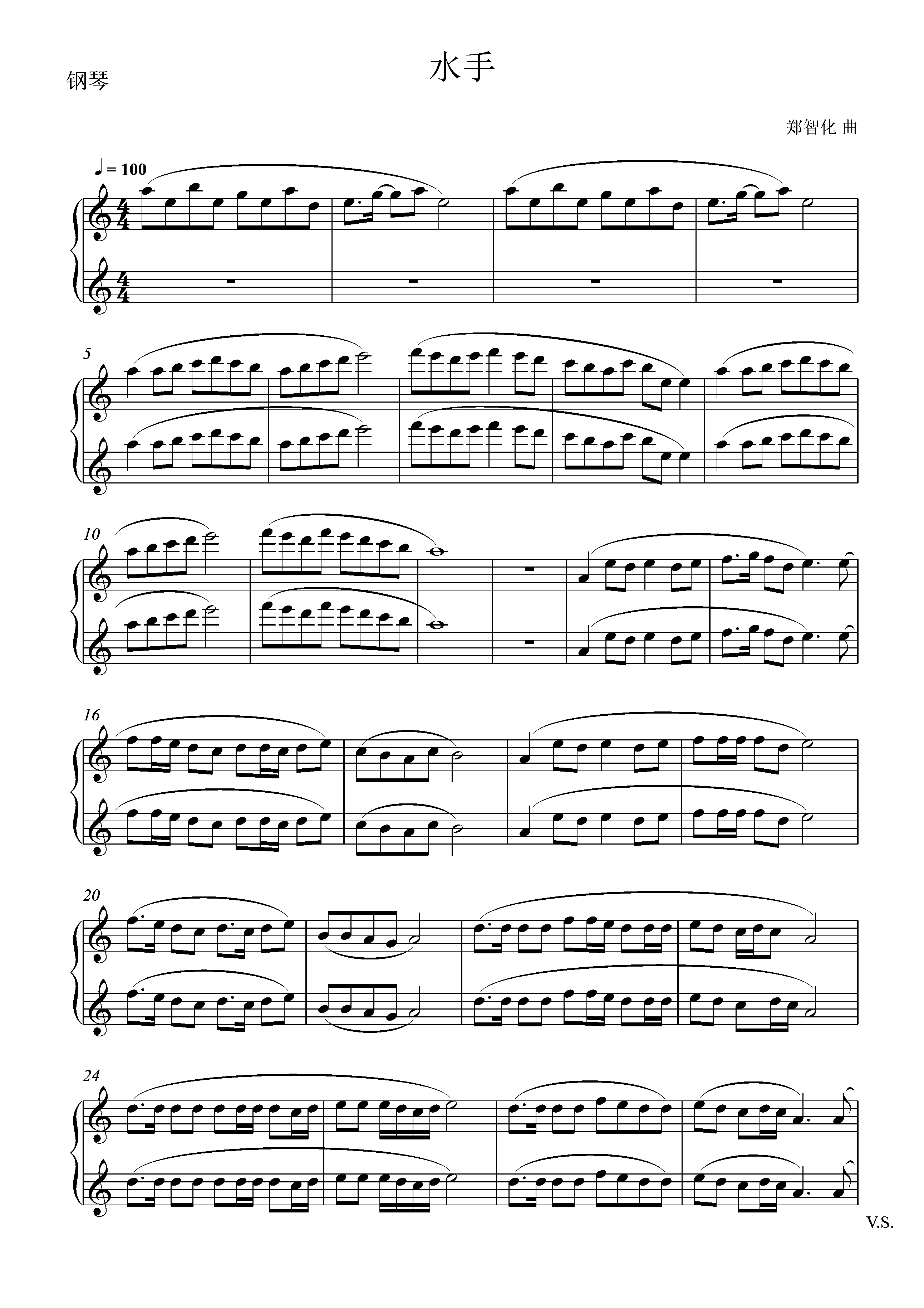 • 水手钢琴简谱 C调 数字双手 郑智化