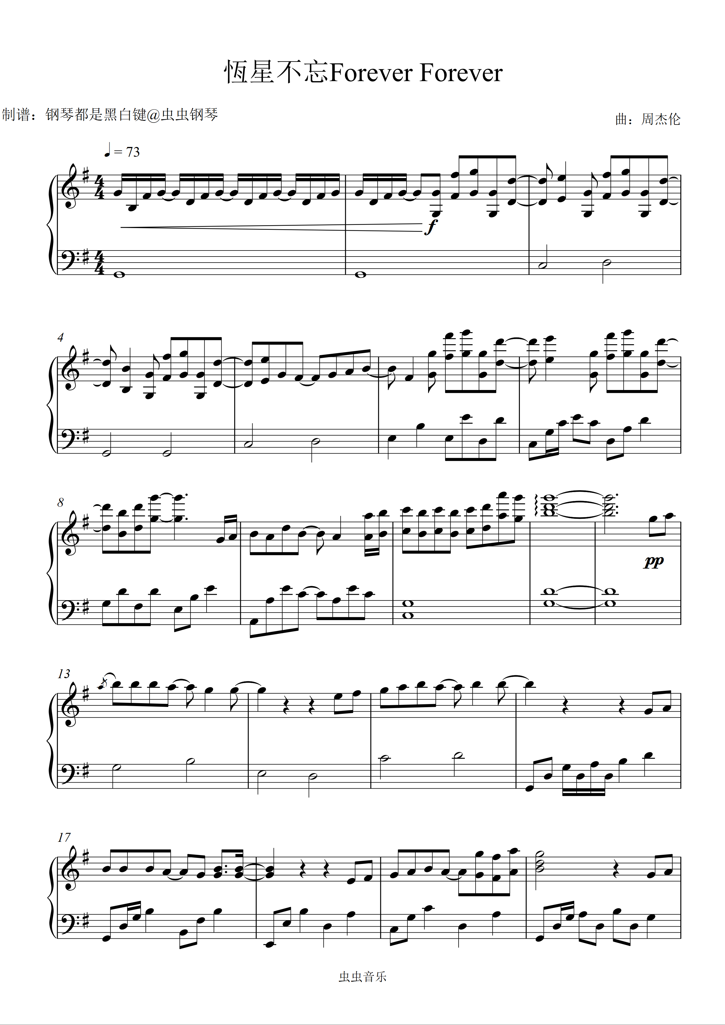 钢琴谱:[周杰伦/阿信新歌]恆星不忘Forever Forever[钢琴演奏版]