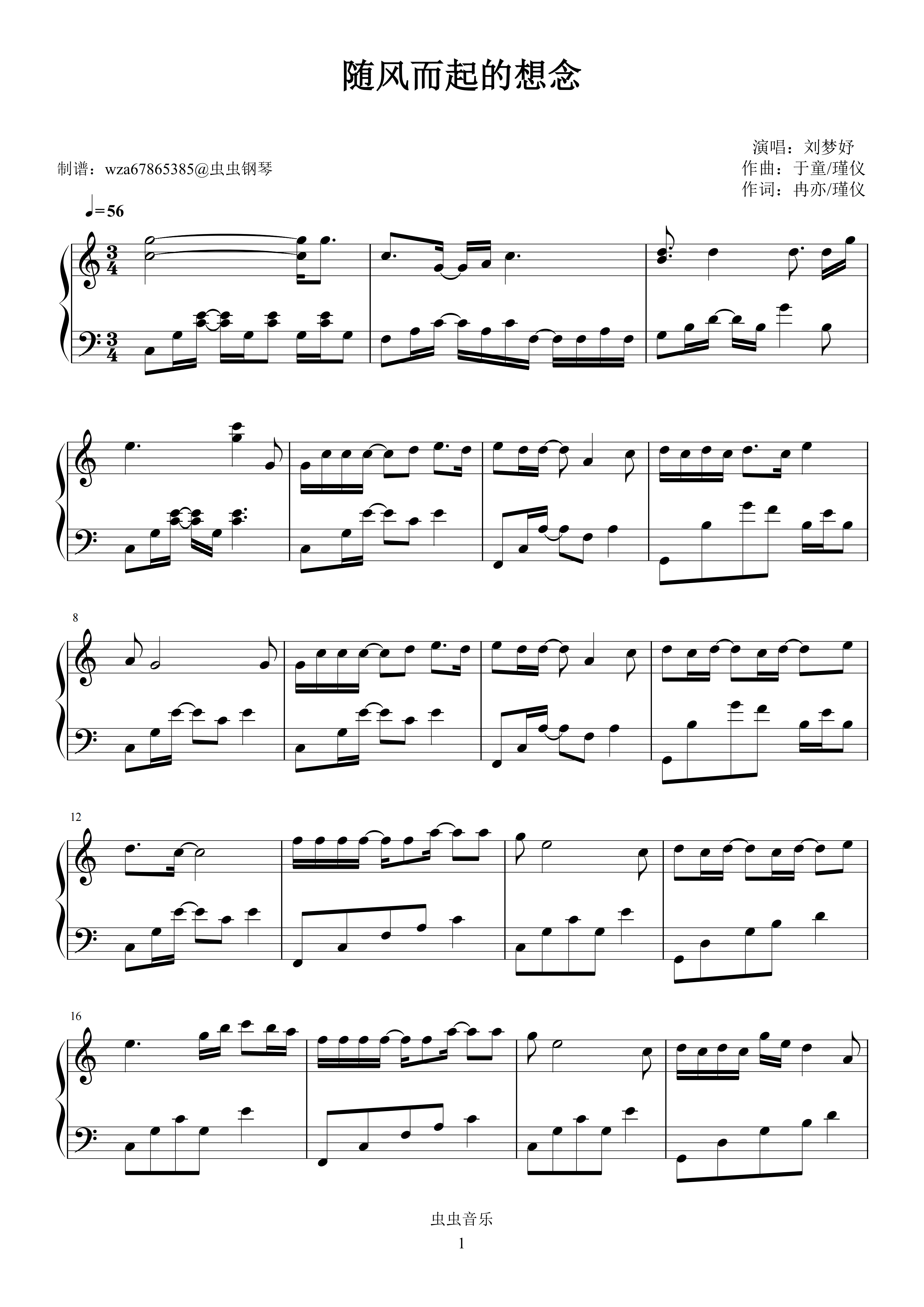 钢琴谱:随风而起的想念