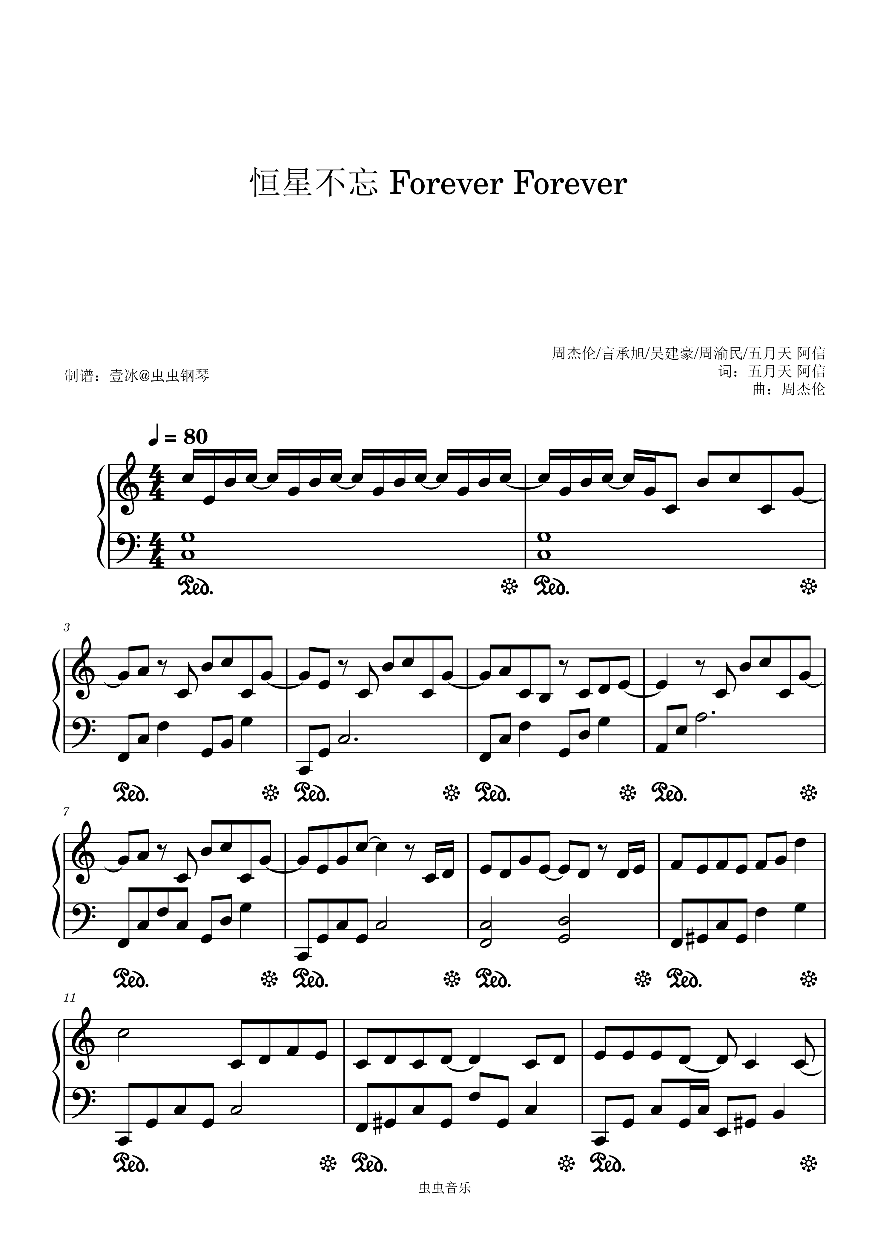 恒星不忘 Forever Forever钢琴简谱 数字双手