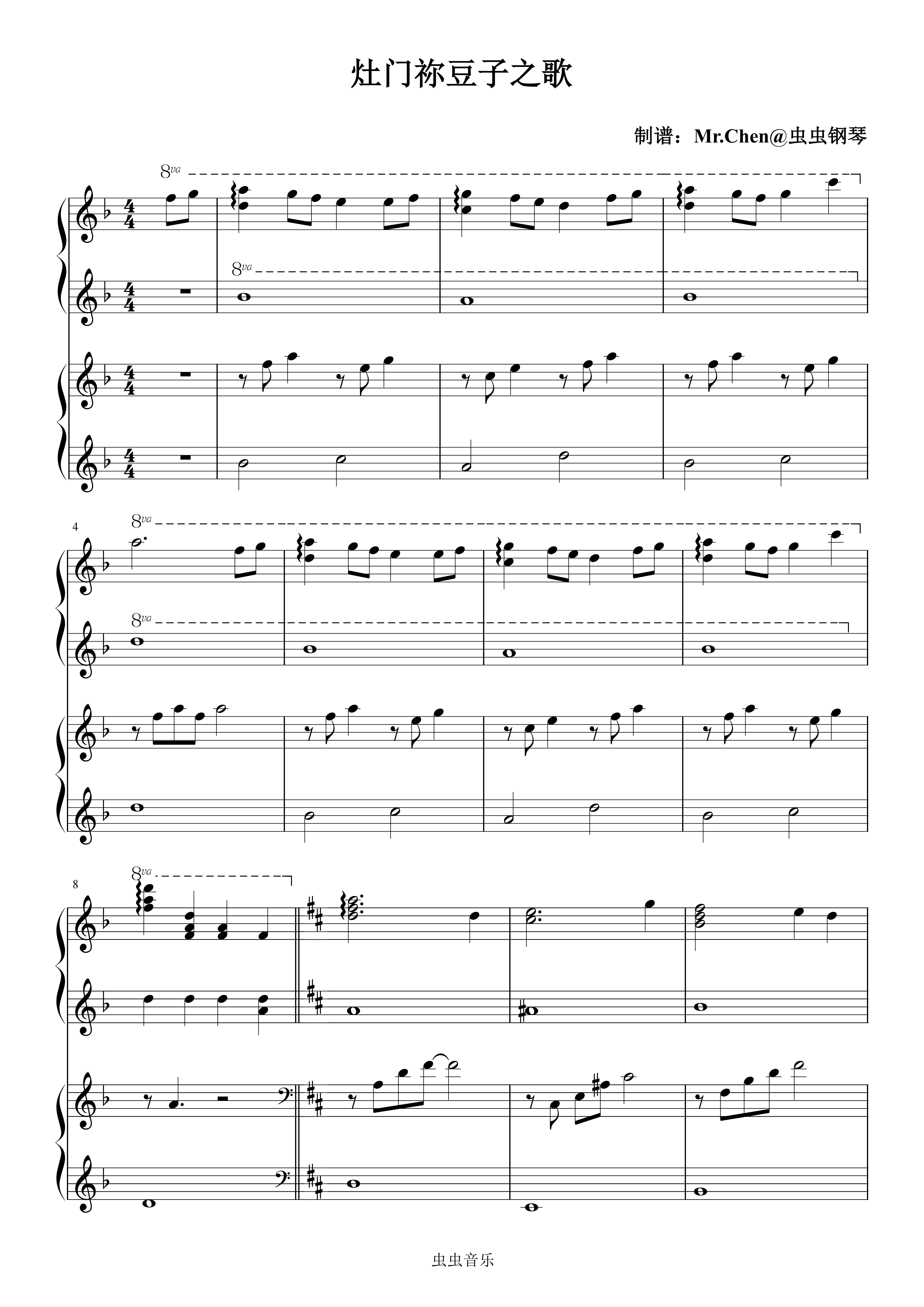 钢琴谱:灶门祢豆子之歌 (四手联弹)-【鬼灭之刃】插曲