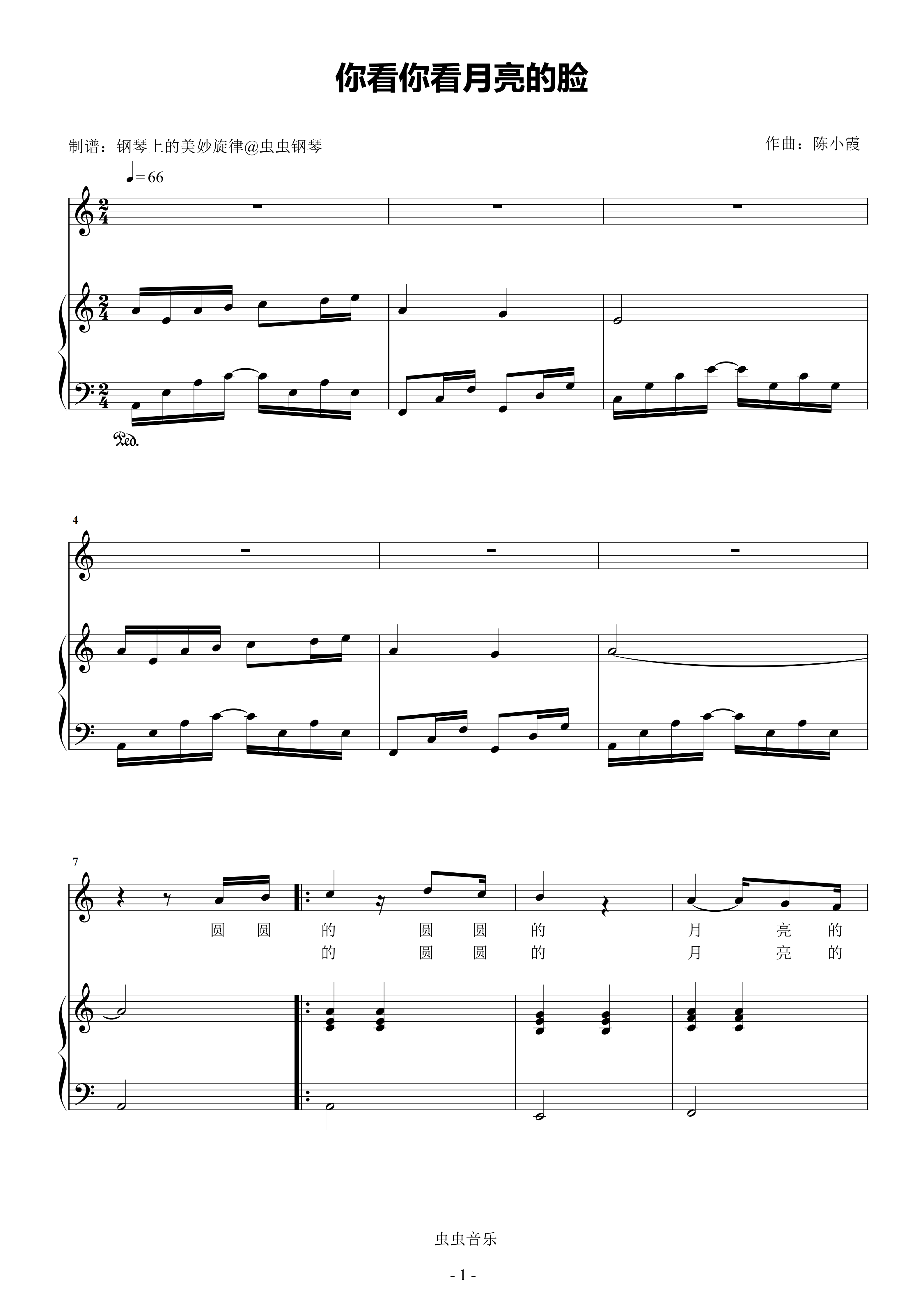 你看你看月亮的脸钢琴简谱 数字双手 杨立德
