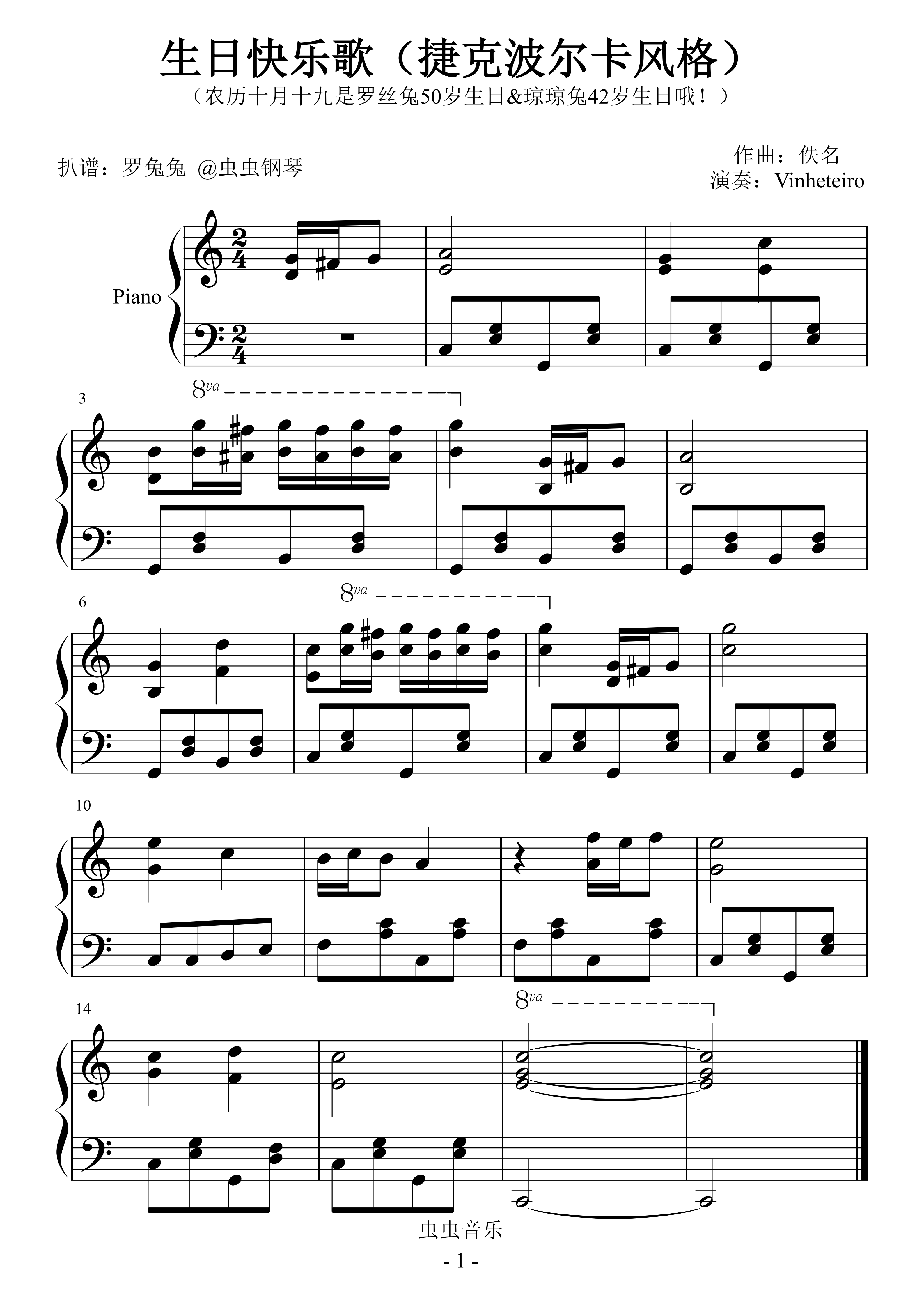 钢琴谱:生日快乐歌(捷克波尔卡风格)(祝罗丝兔50岁&琼琼兔42岁生日快乐)