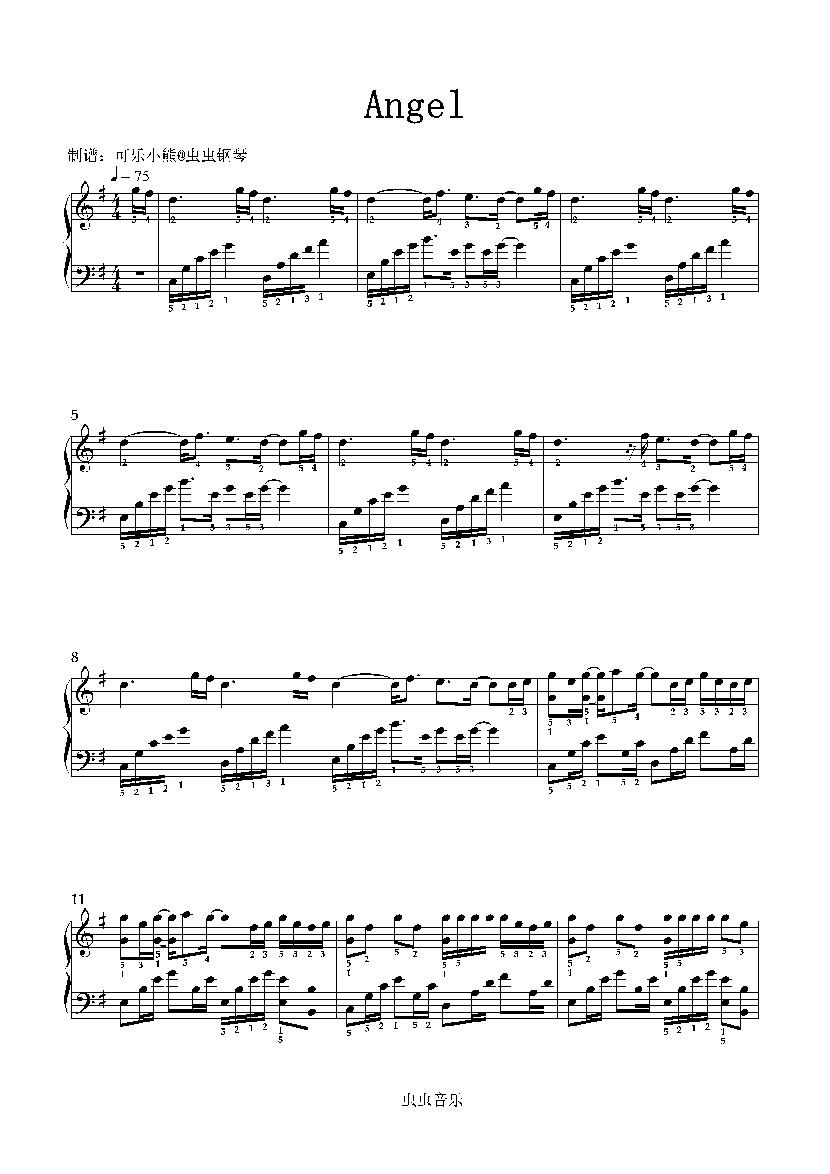 • Angel钢琴简谱 C调 数字双手