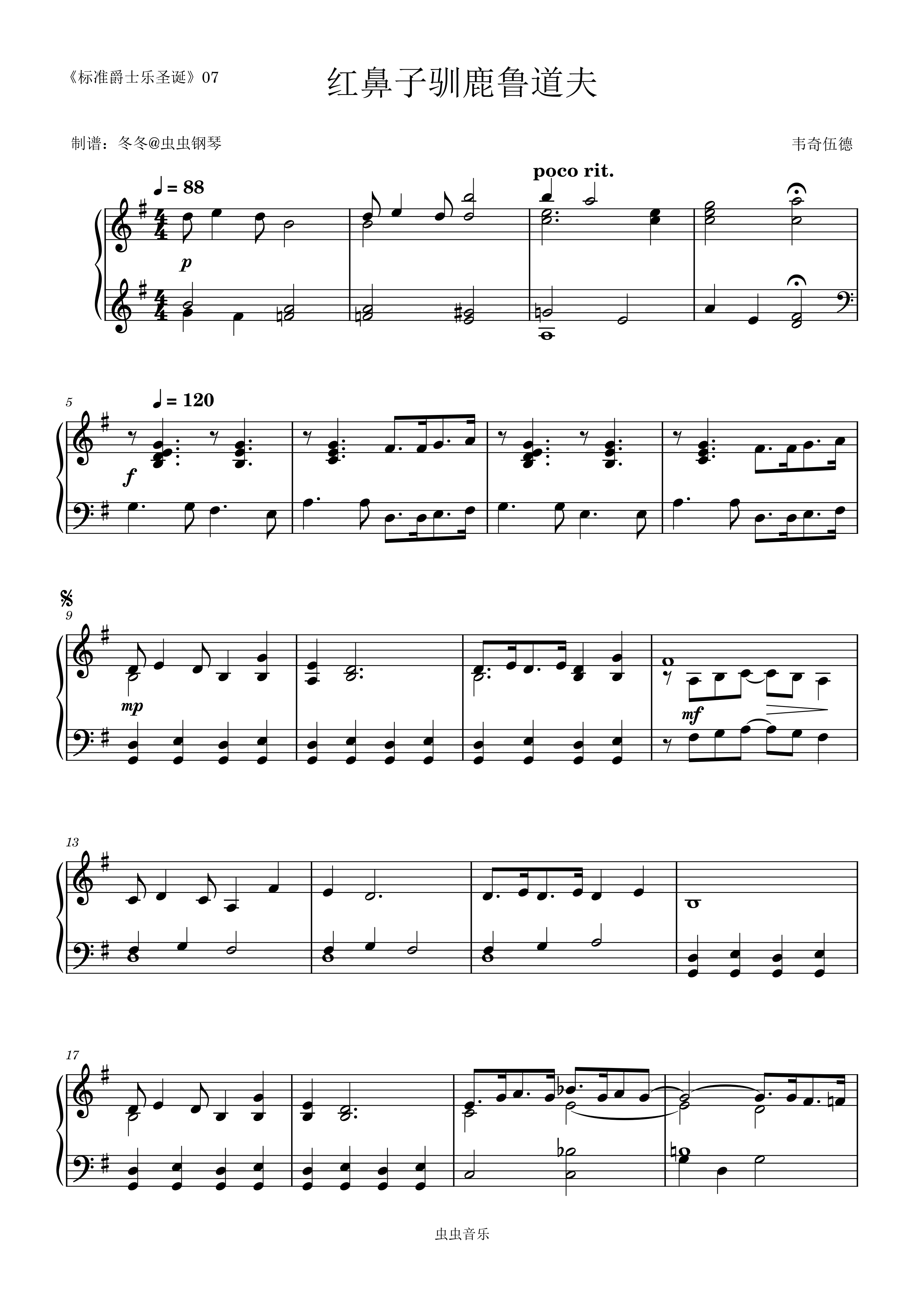 钢琴谱:红鼻子驯鹿鲁道夫【爵士】