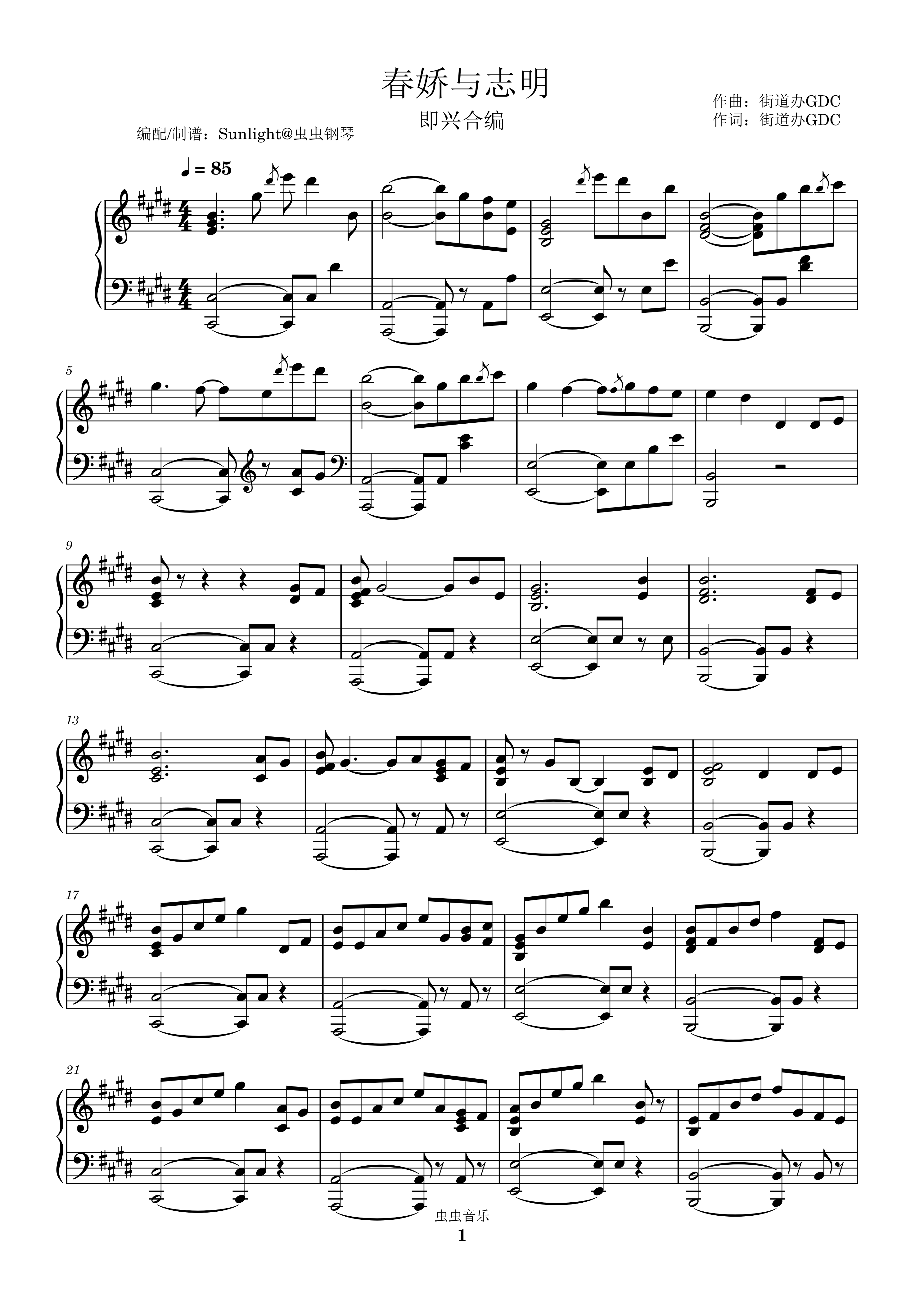 • 春娇与志明钢琴简谱 E调 数字双手 街道办