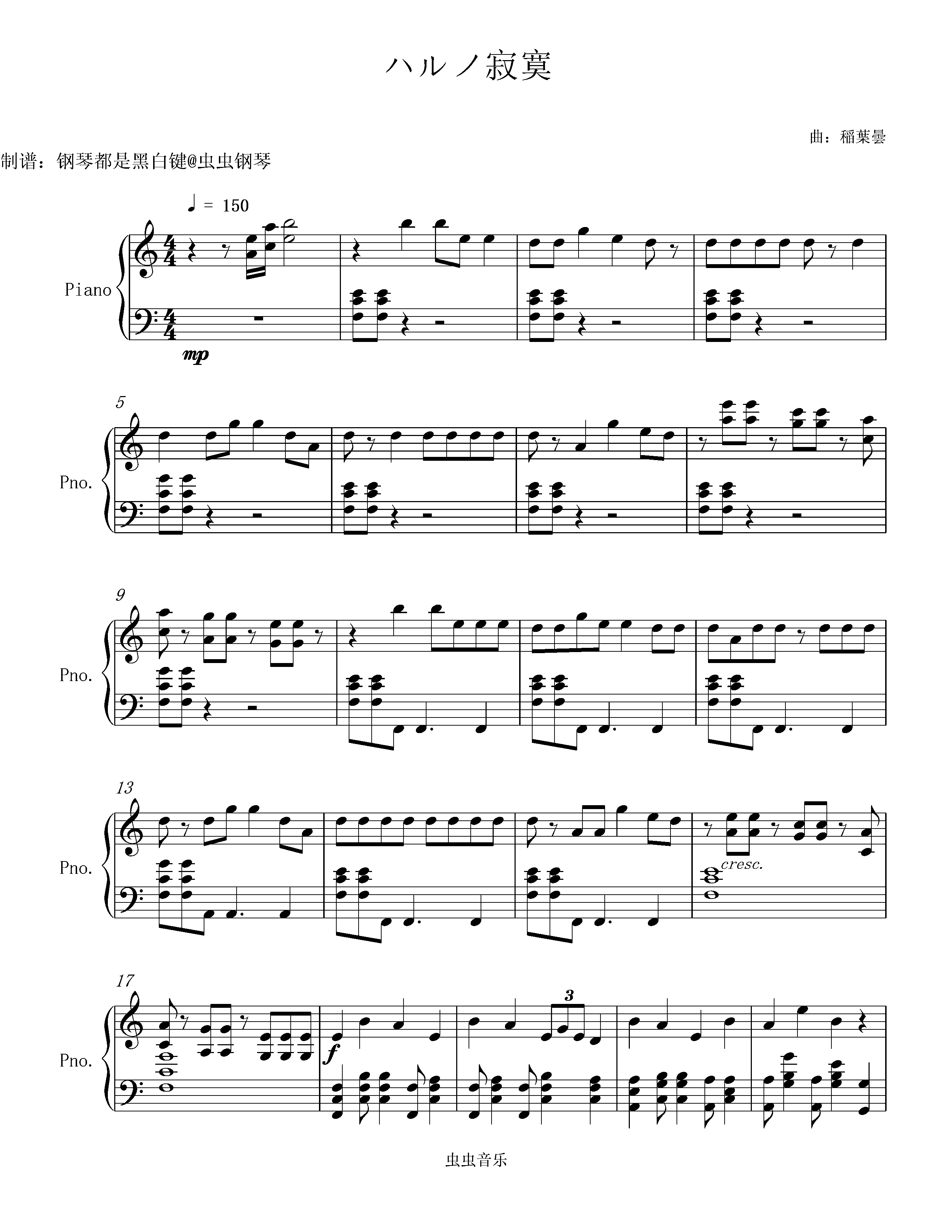 ハルノ寂寞钢琴简谱 数字双手 稲葉曇