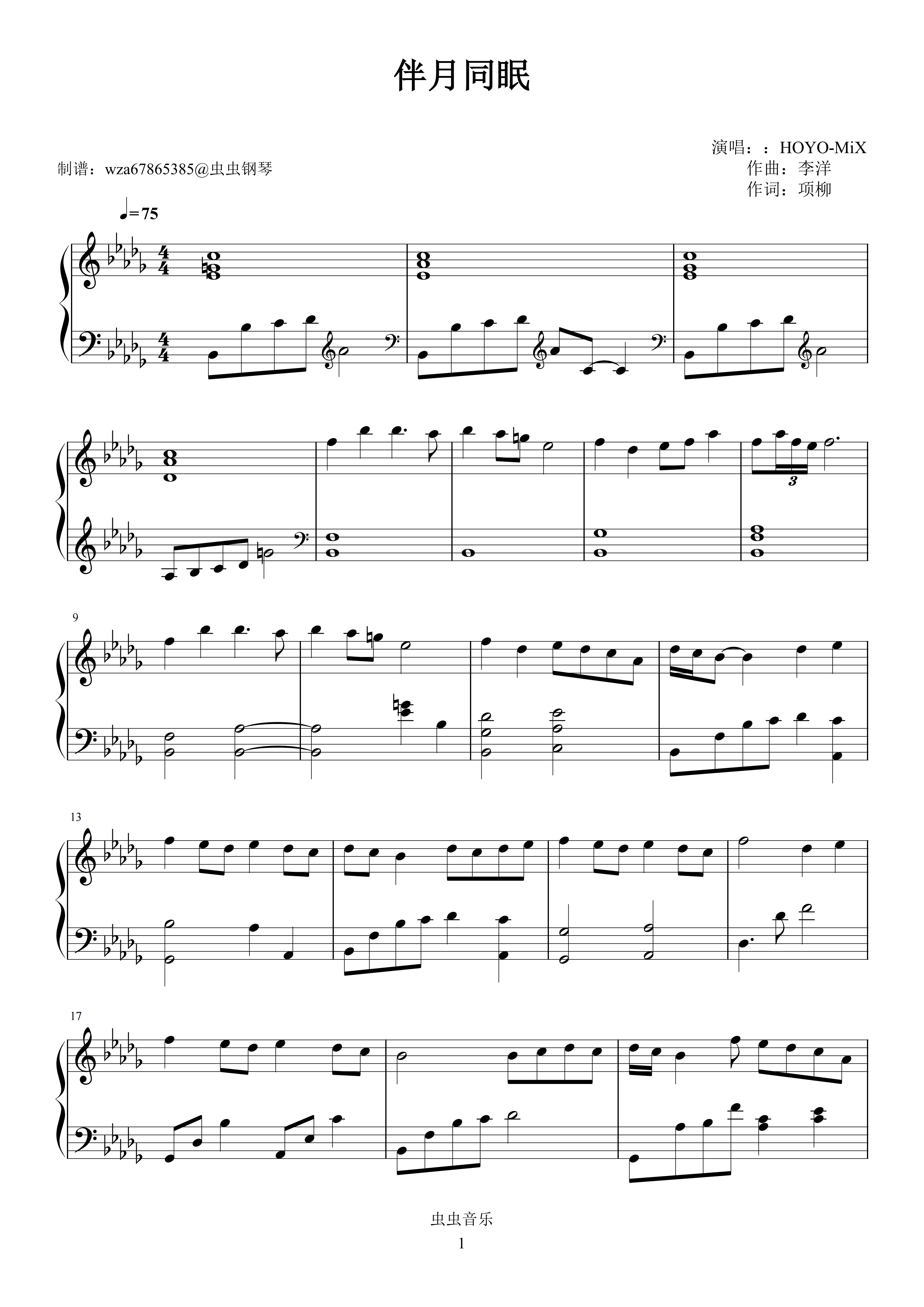 • 伴你月落星沉钢琴简谱 Ab调 数字双手 宋宝宇