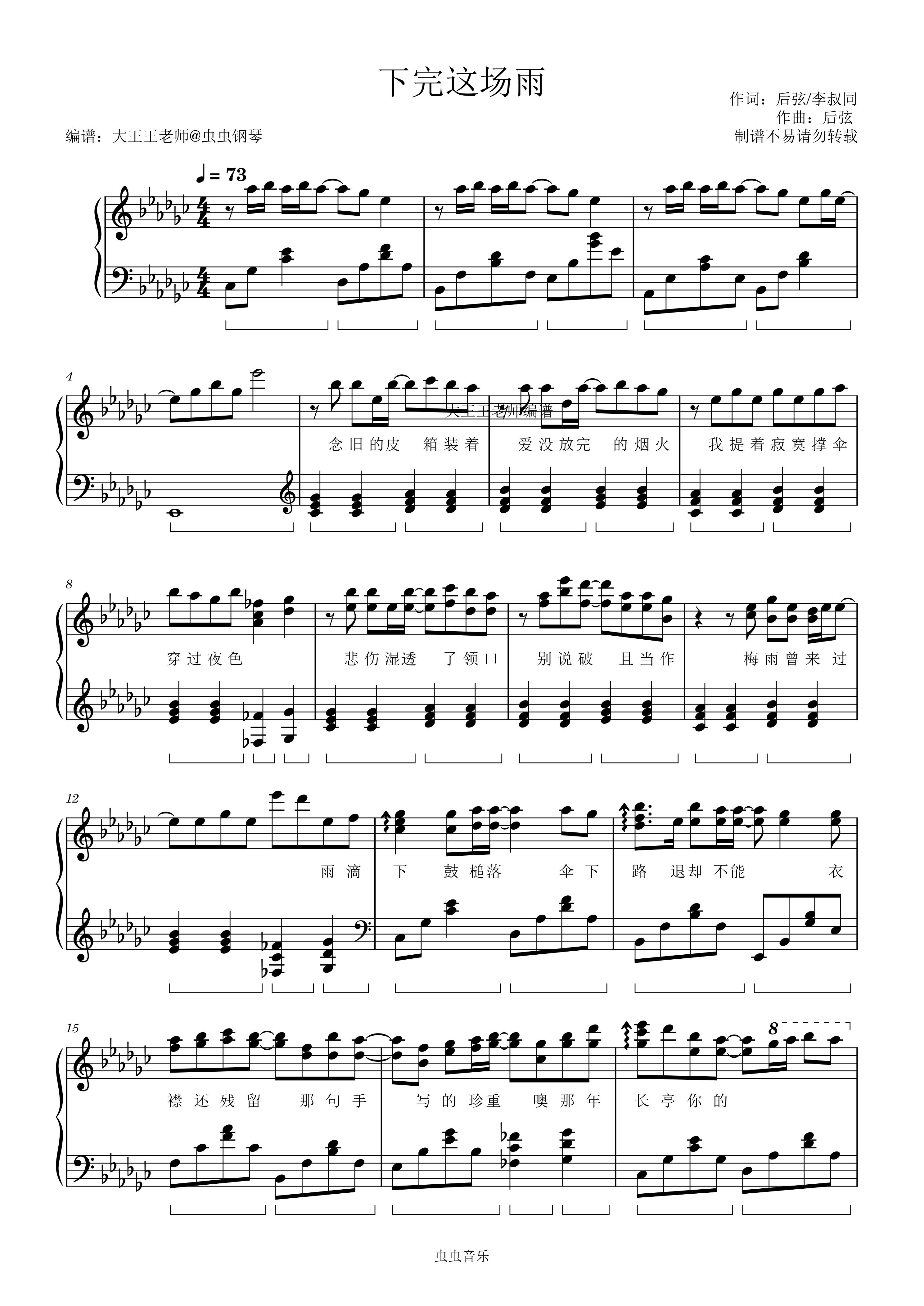下完这场雨钢琴简谱 数字双手 李叔同 后弦