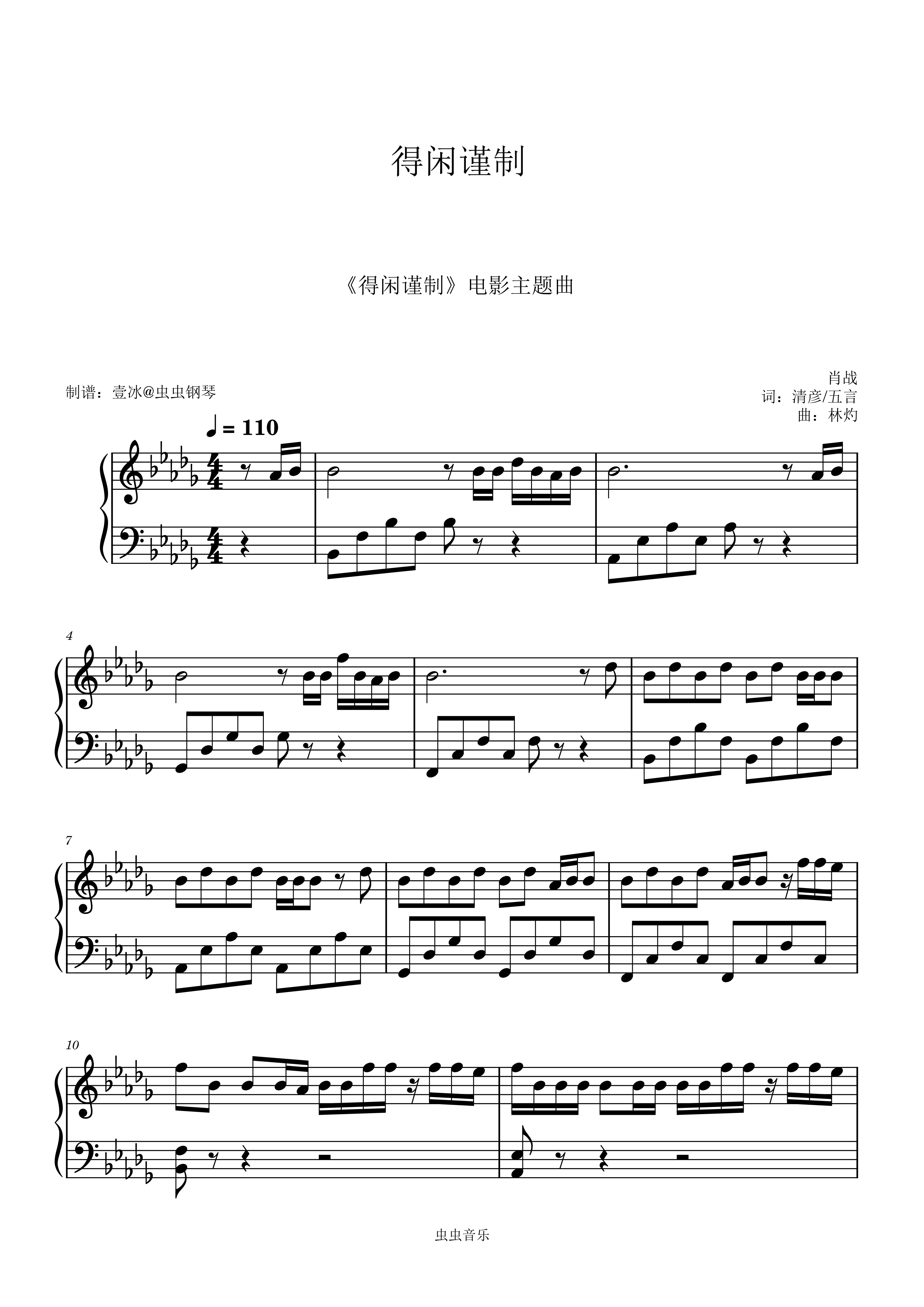 钢琴谱:得闲谨制 (《得闲谨制》电影主题曲) - 原调