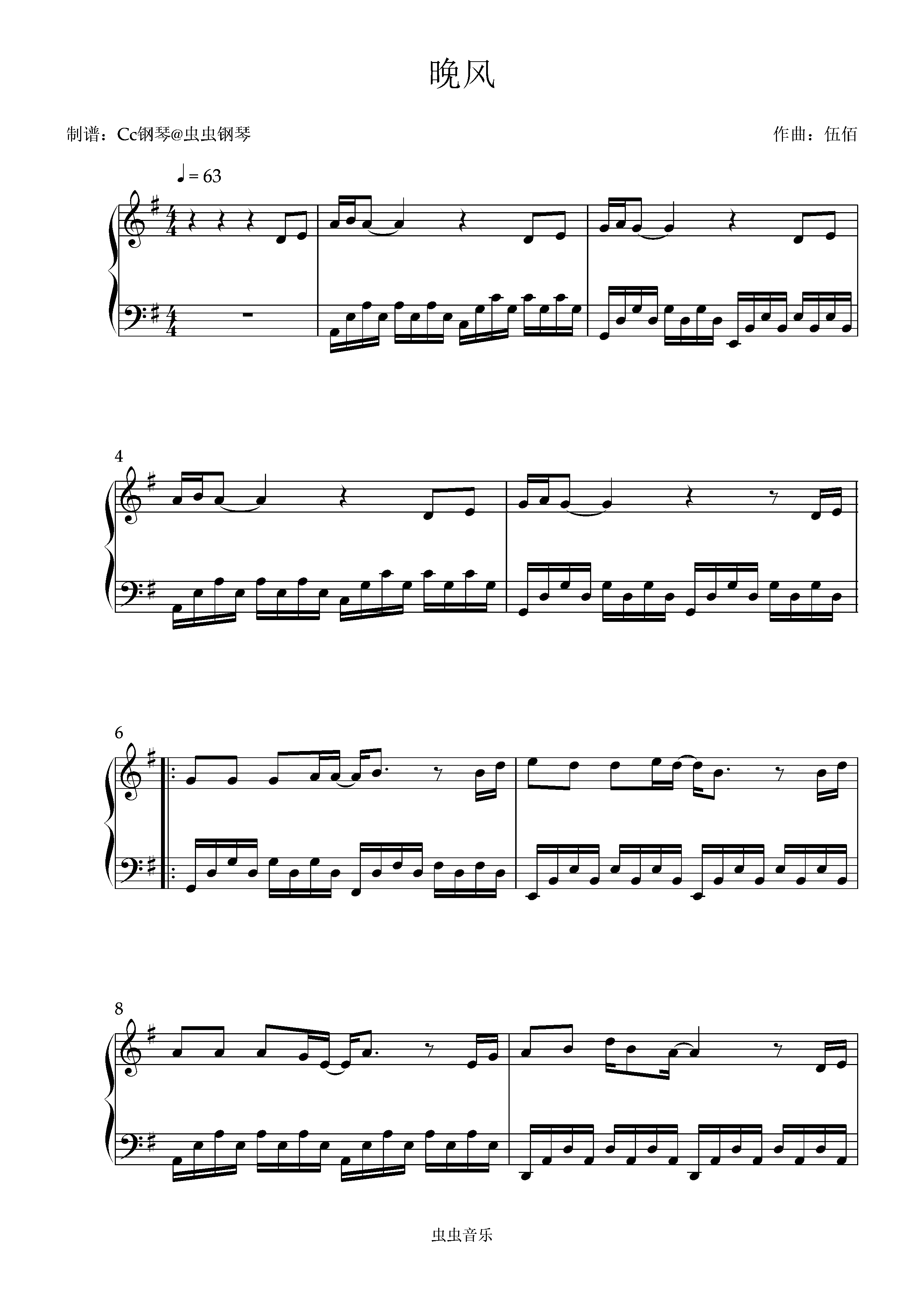 • 晚风心里吹钢琴简谱 C调 数字双手 邓澄/三石/彭圆圆