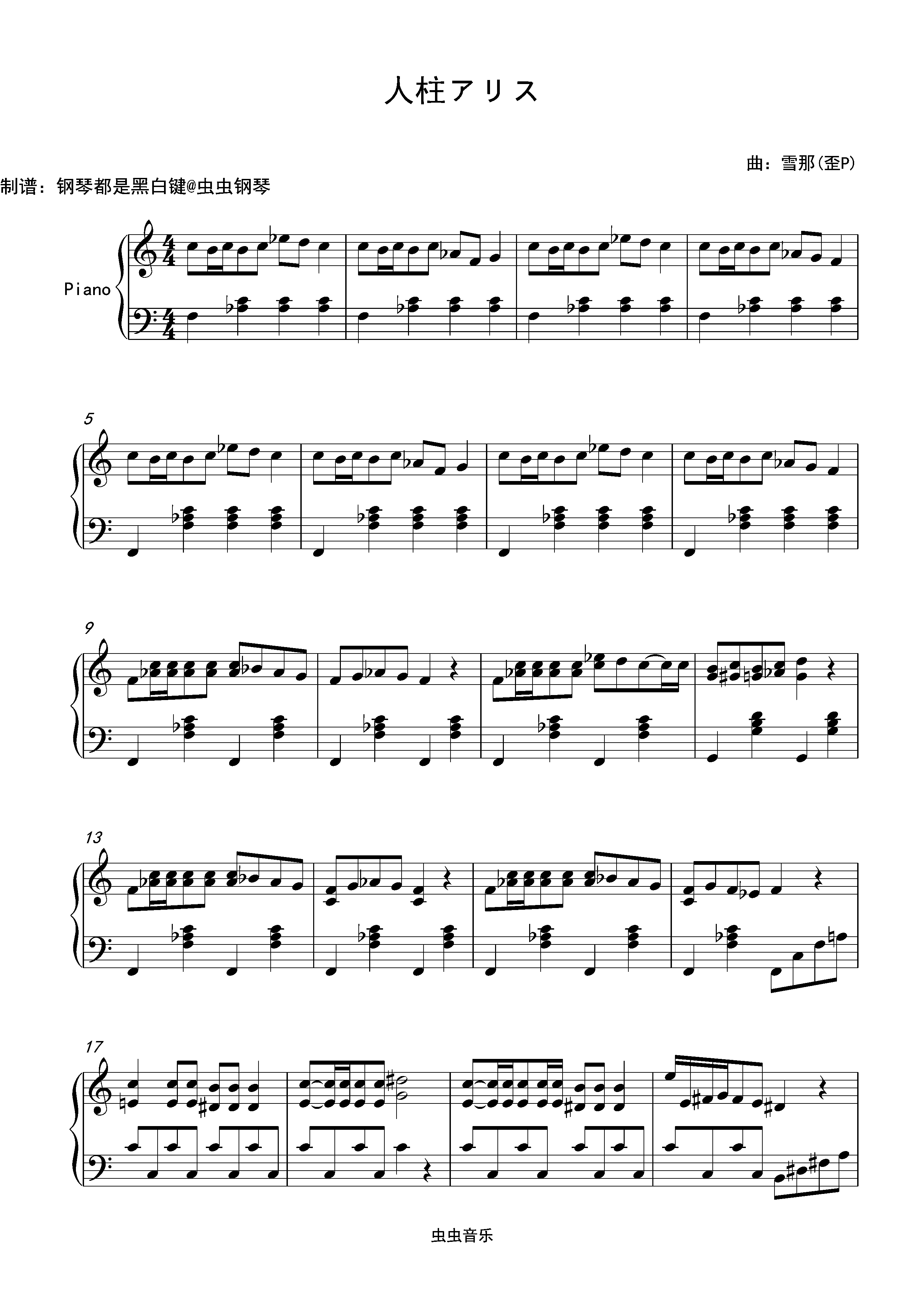 柱アリス钢琴简谱 数字双手 雪那(歪P)