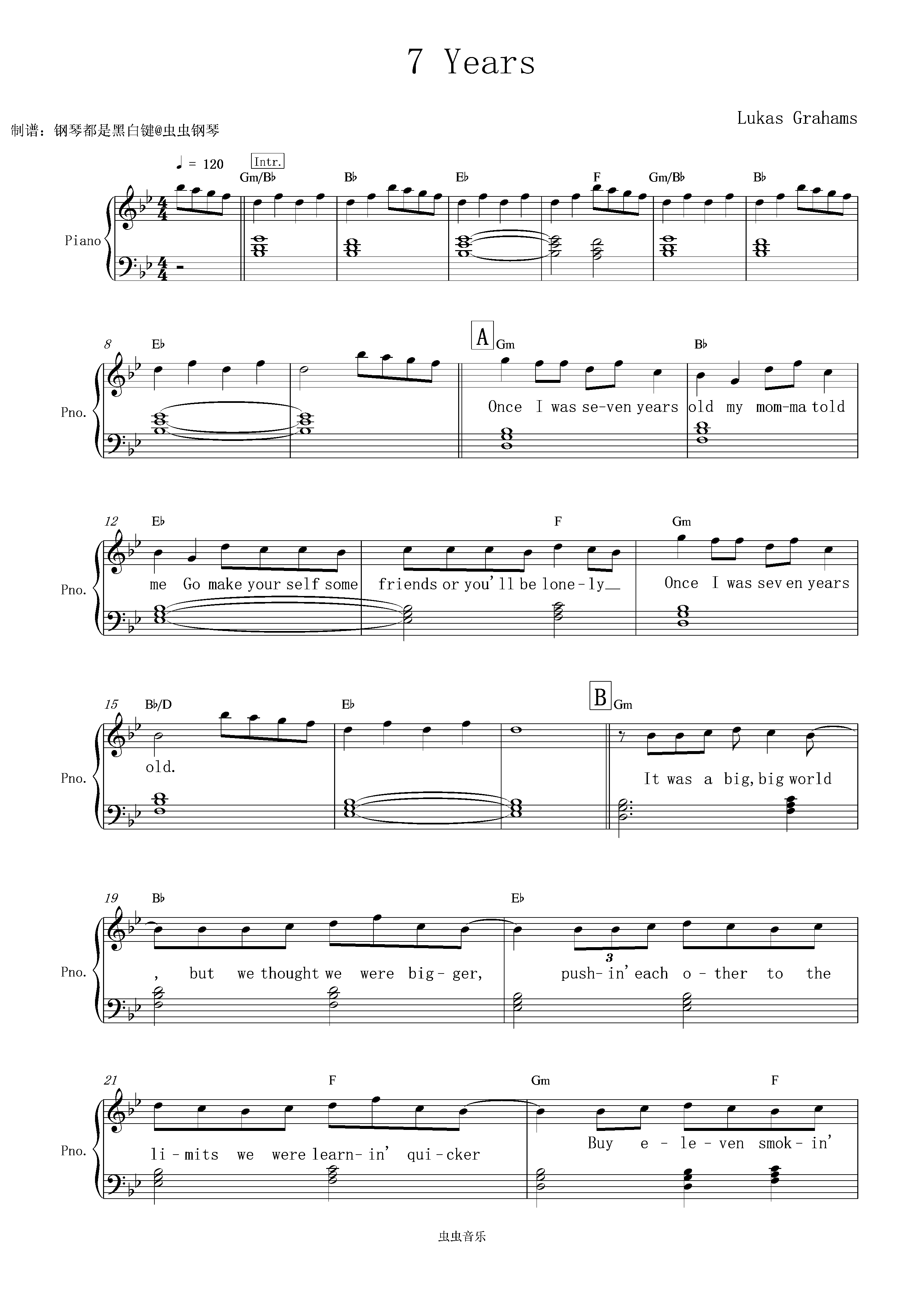 钢琴谱:只要听10秒,保证你爱上这首歌《7 Years》(附歌词和弦标记)