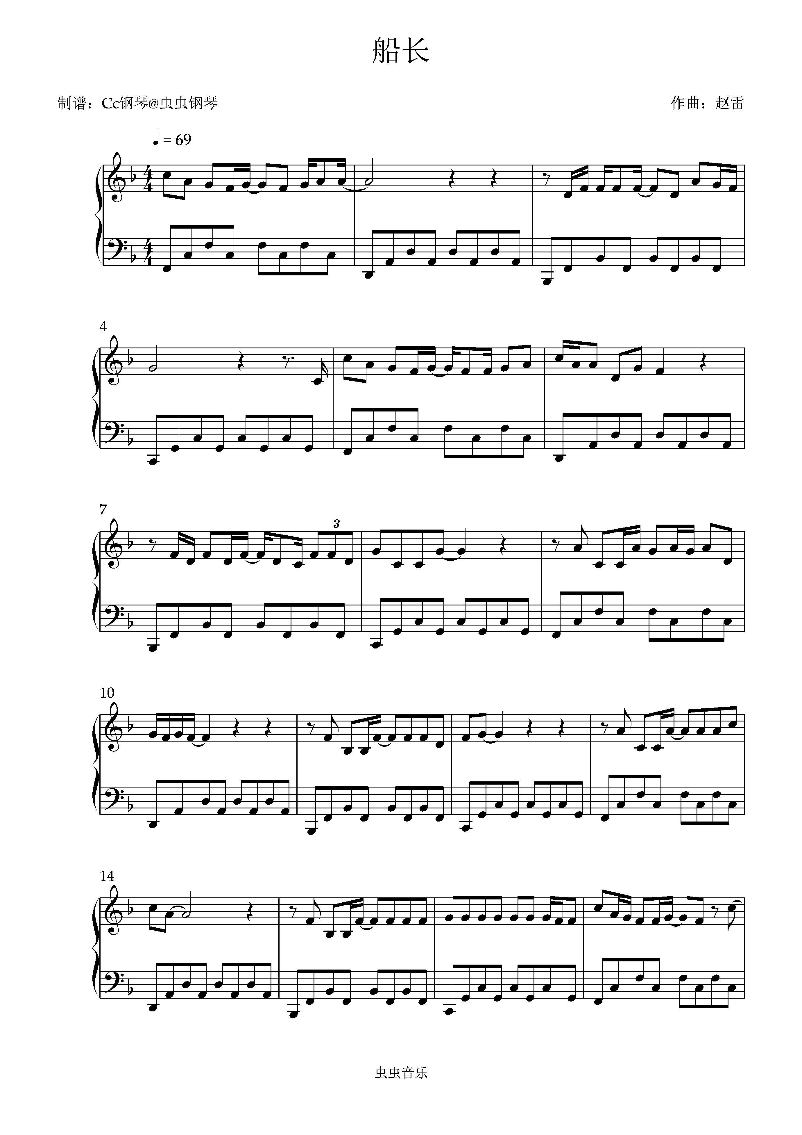 • 海盗船长钢琴简谱 C调 数字双手 功夫胖