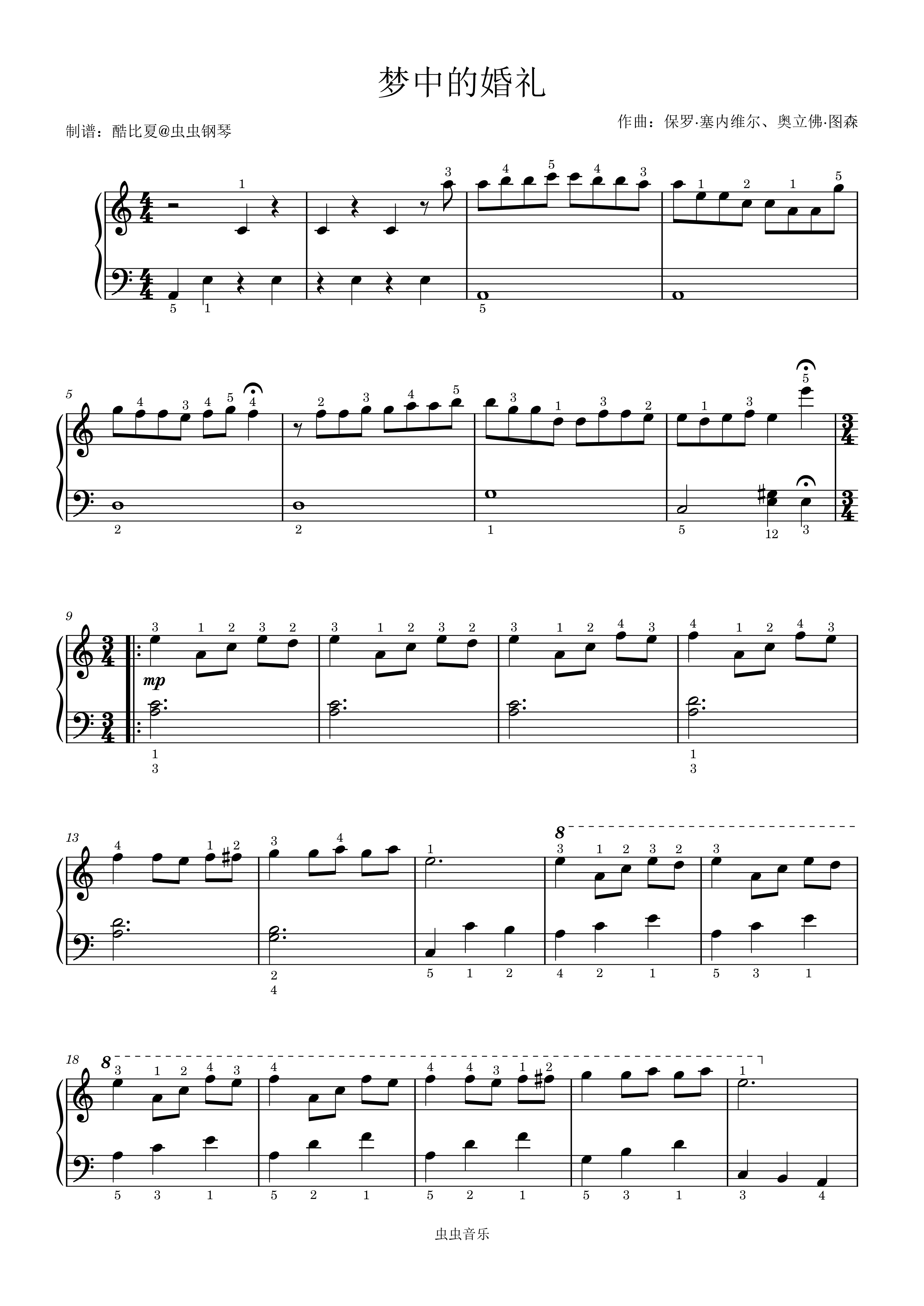 • 梦中的婚礼钢琴简谱 C调 数字双手
