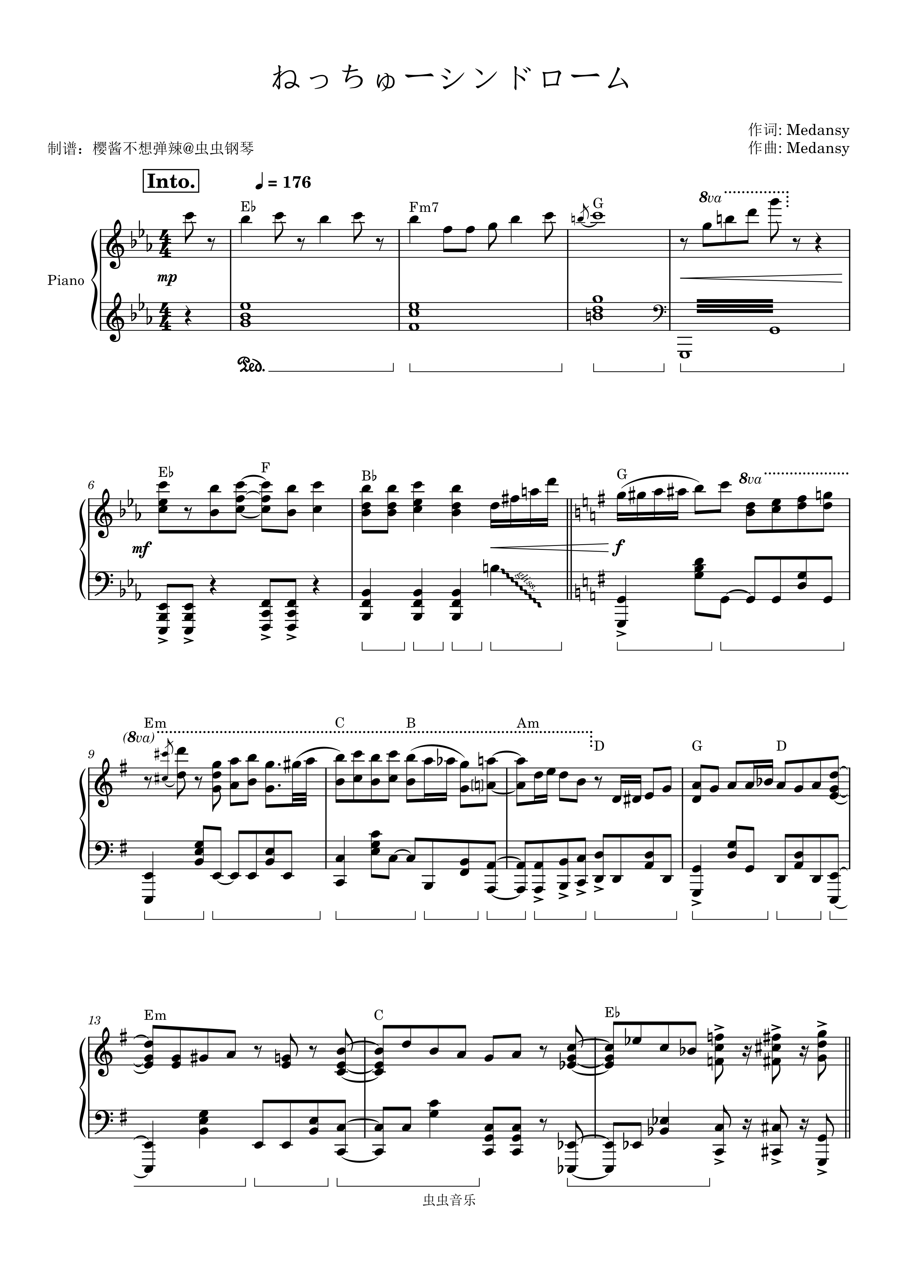 钢琴谱:ねっちゅーシンドローム 魔法少女ホロウィッチ!