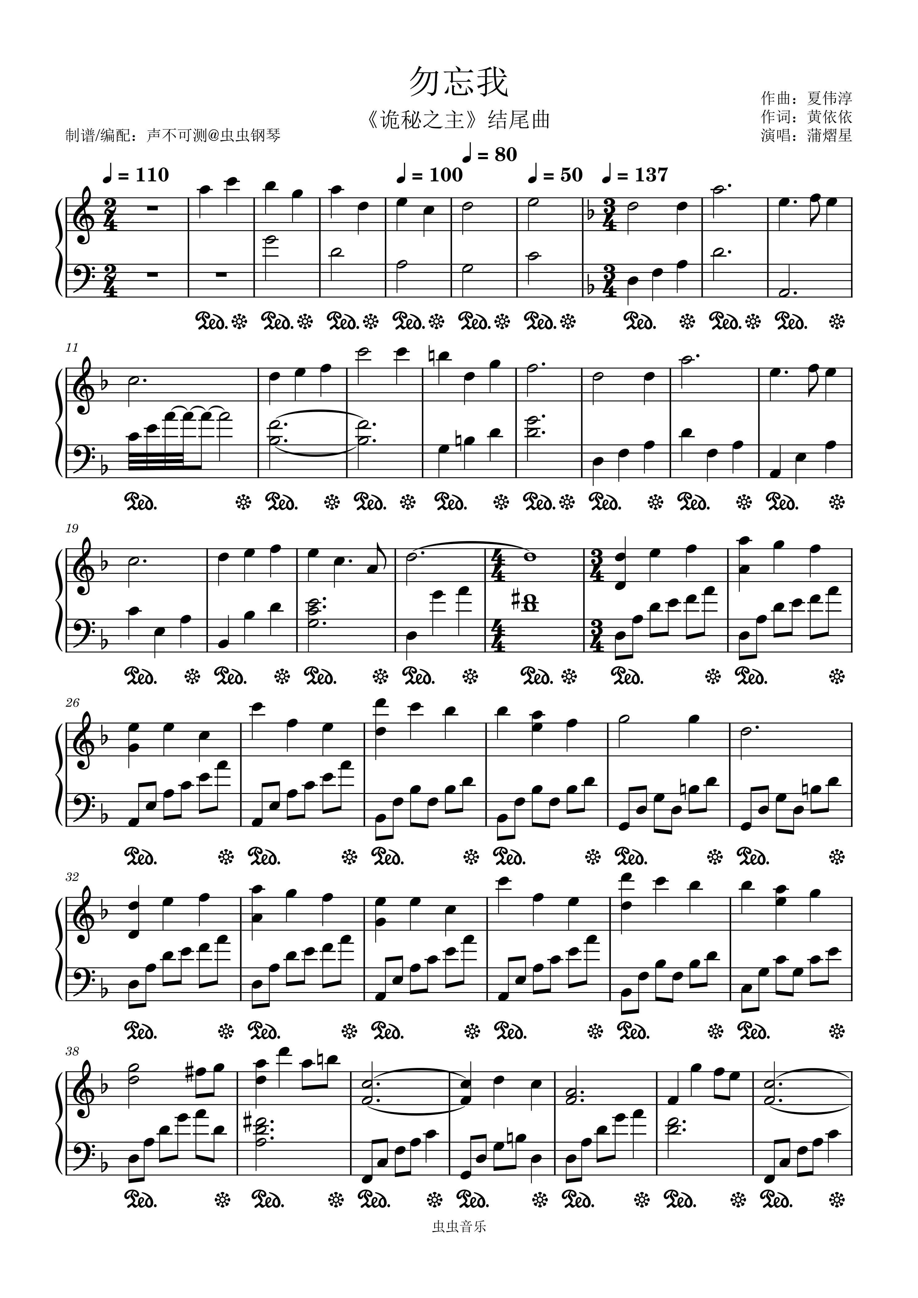 钢琴谱:勿忘我《诡秘之主》结尾曲 - 声不可测