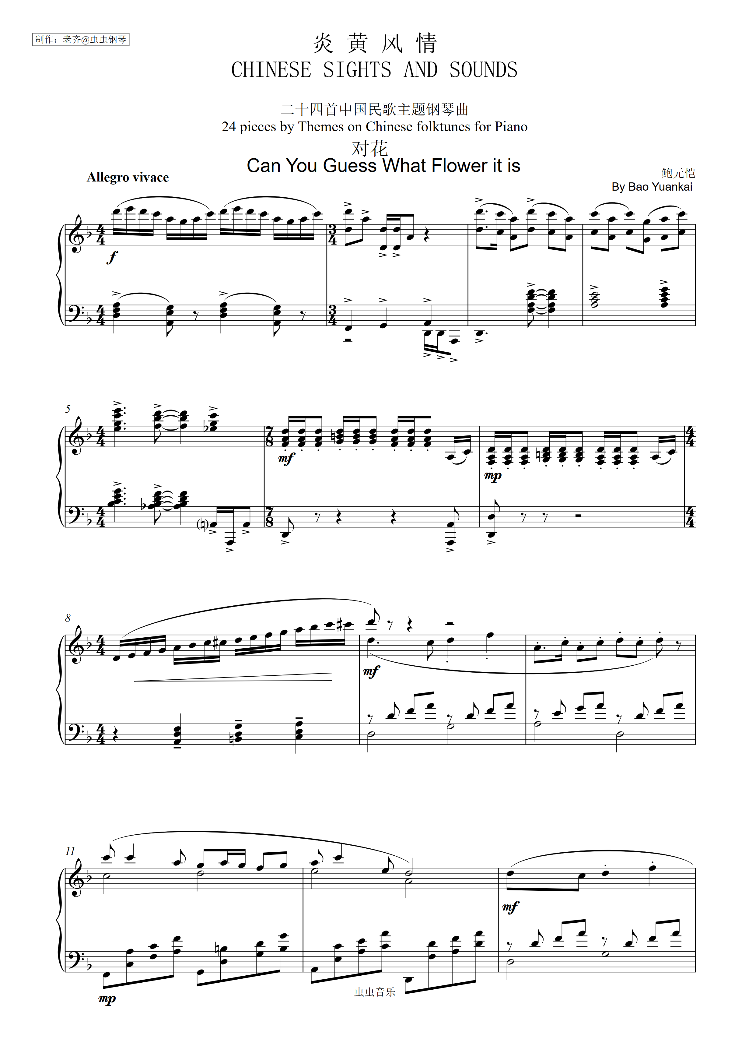 • 山东风俗组曲 二、对花钢琴简谱 C调 数字双手