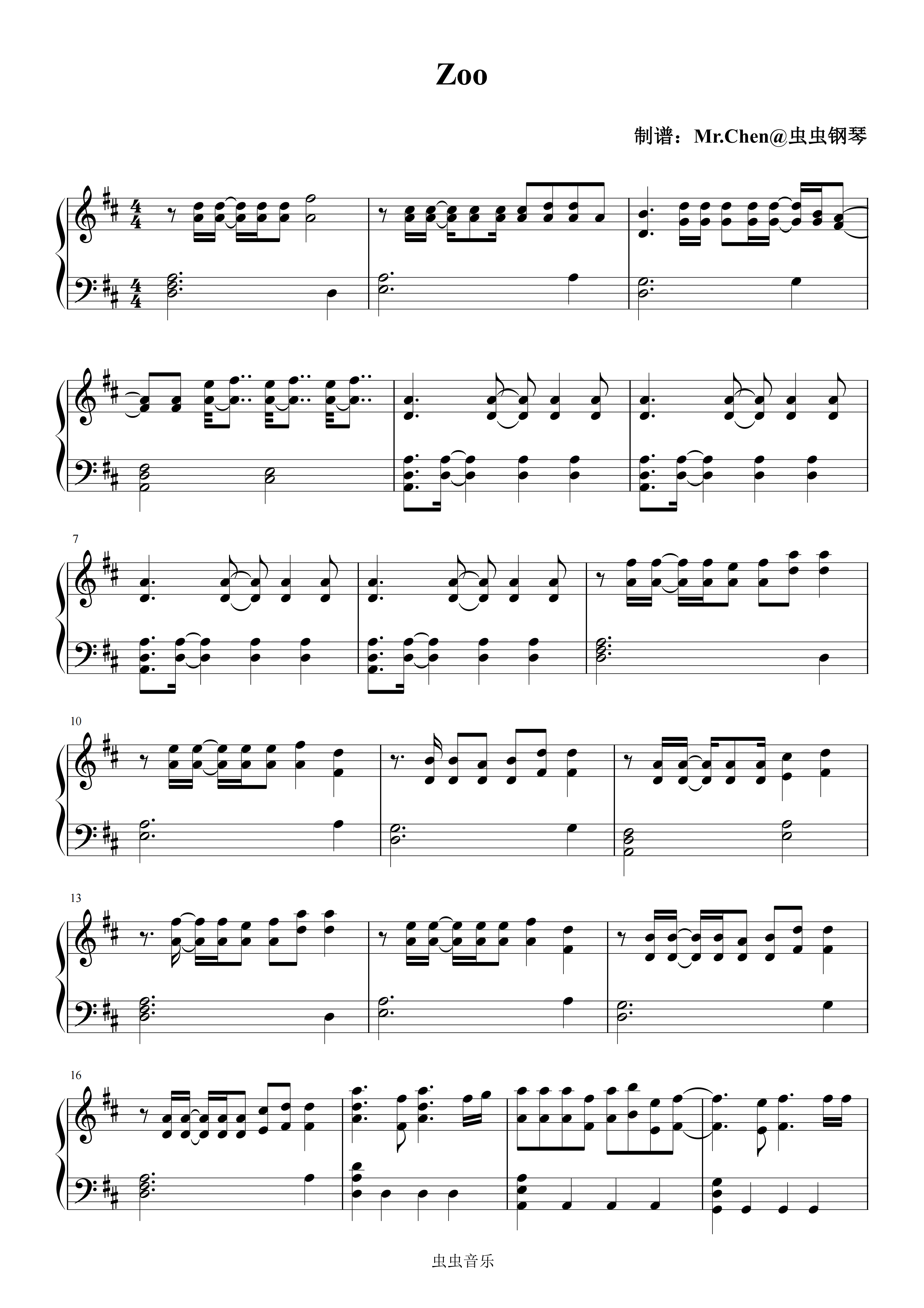 钢琴谱:Zoo - 《疯狂动物成2》主题曲 极度还原