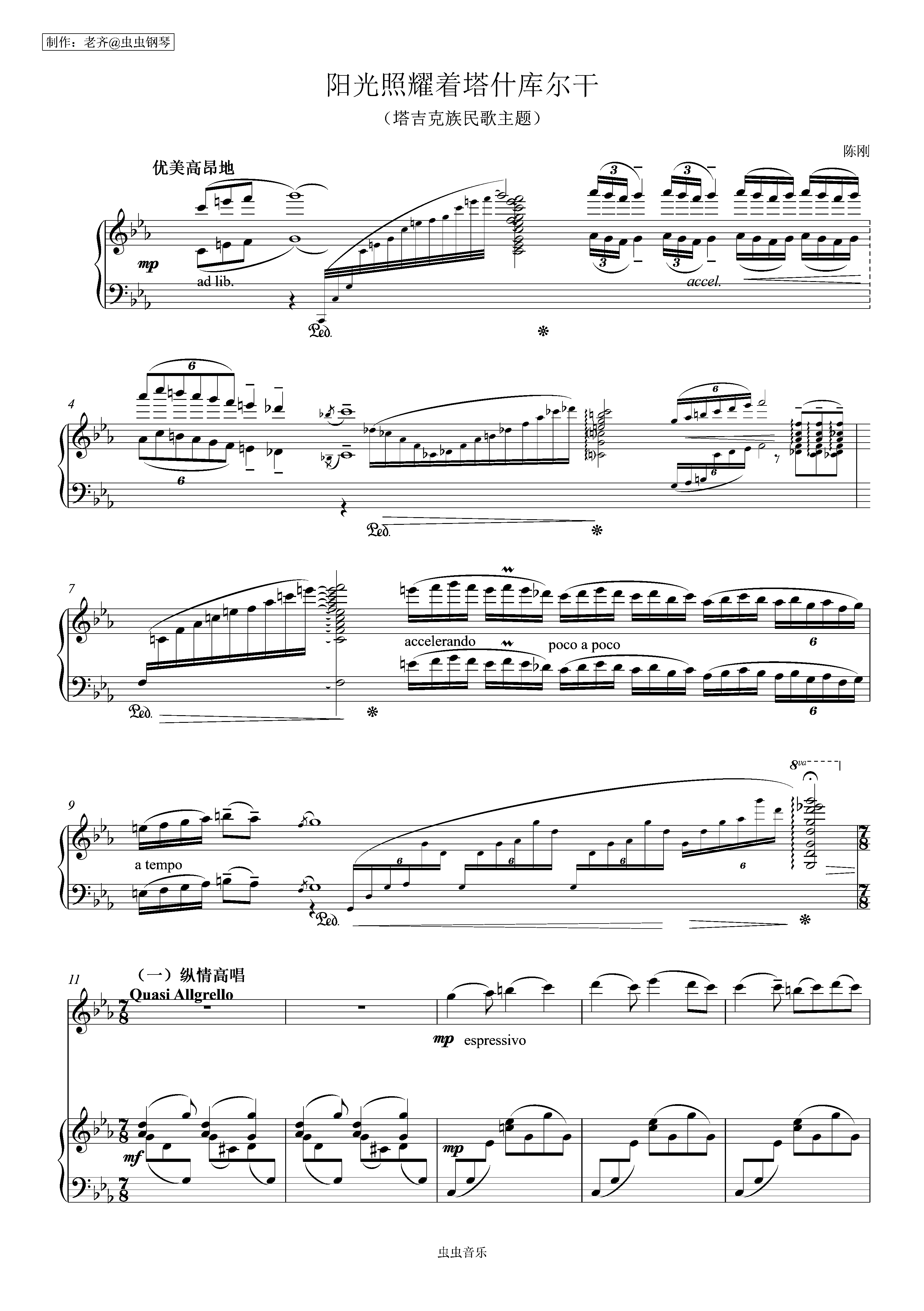 钢琴谱:【小提琴+钢琴】阳光照耀着塔什库尔干