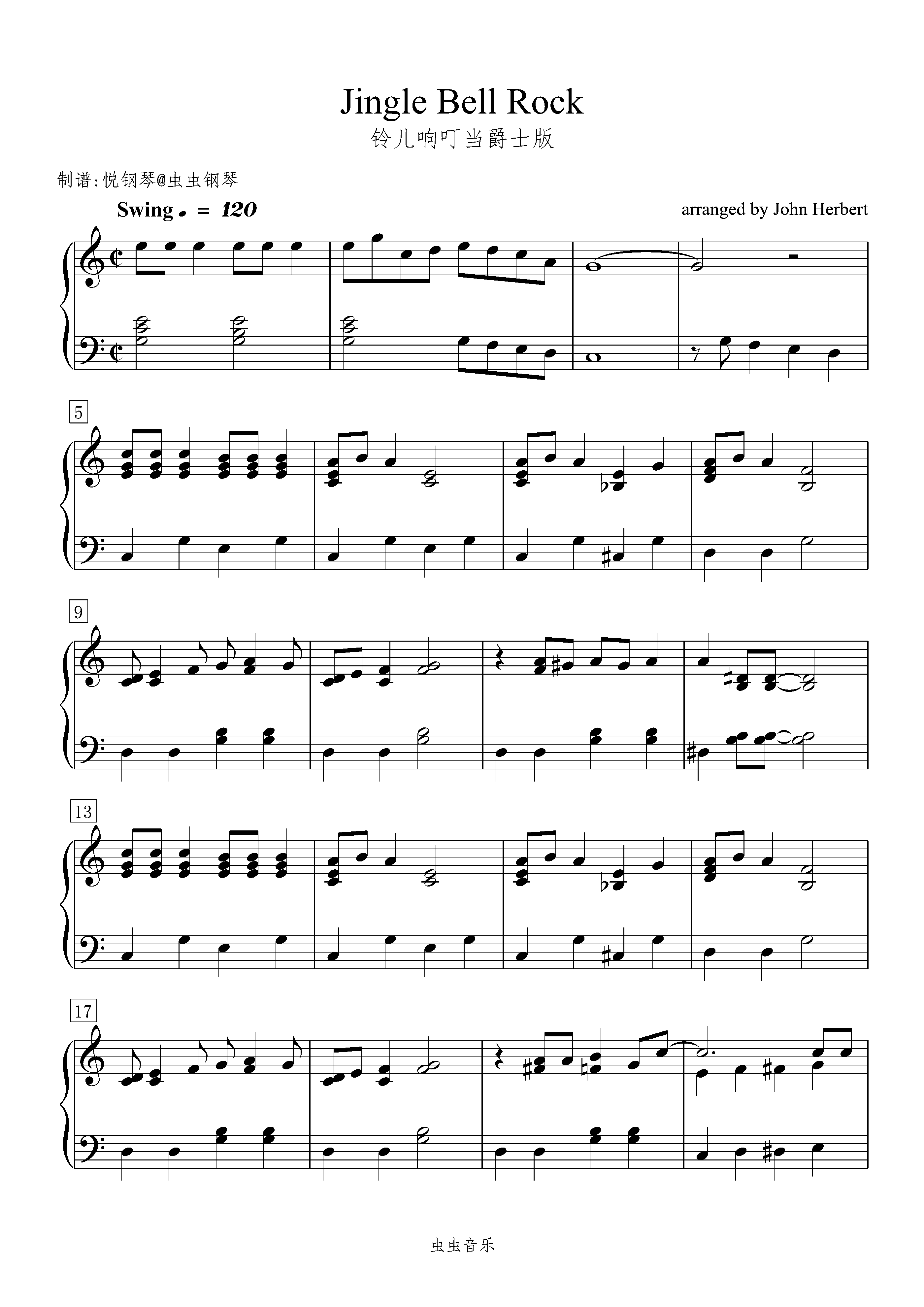 • Jingle Bell Rock钢琴简谱 C调 数字双手
