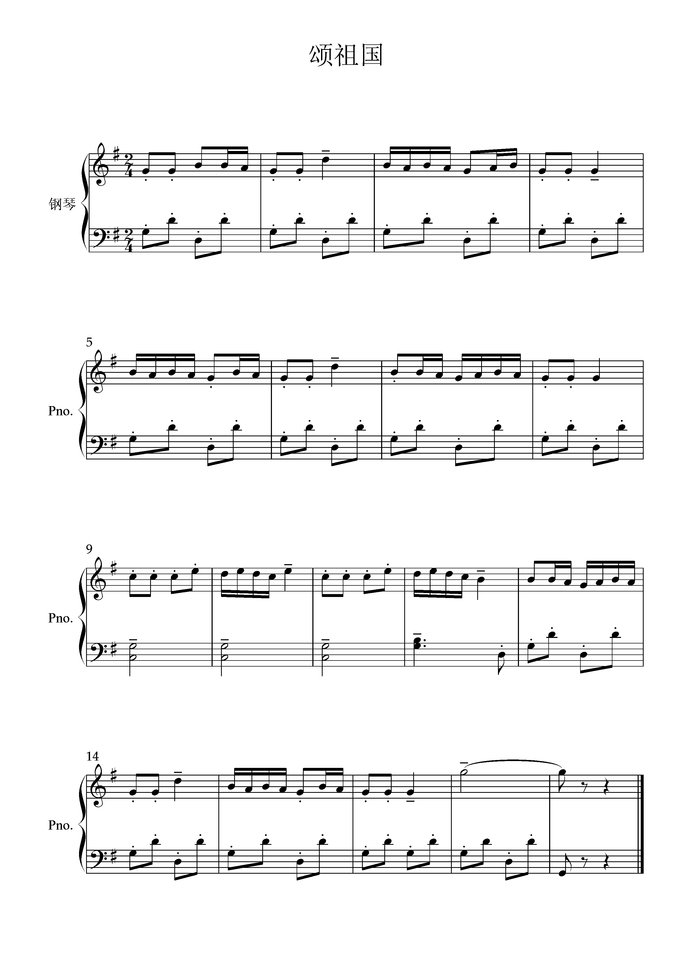 • 歌唱祖国钢琴简谱 C调 数字双手