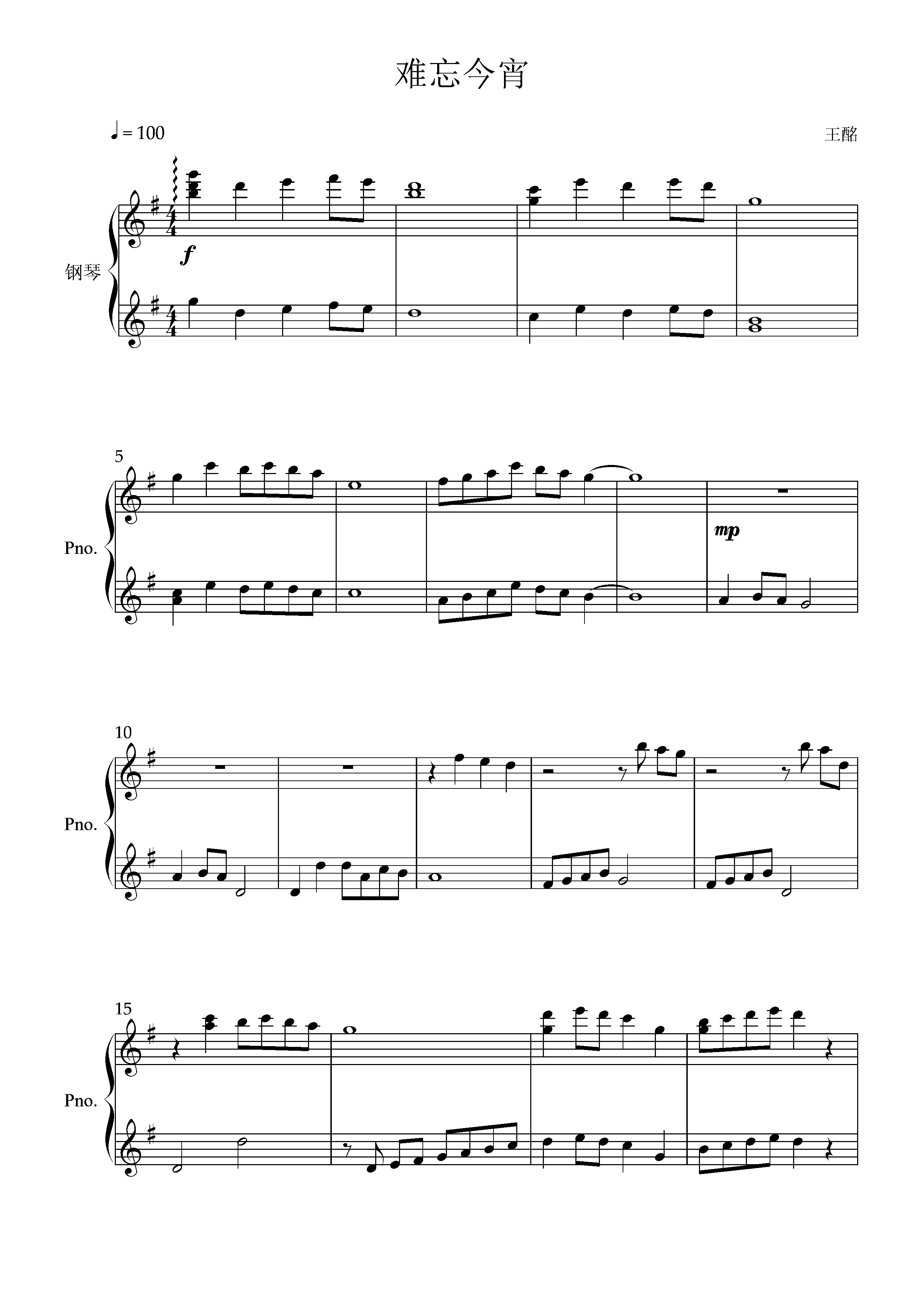 • 难忘今宵钢琴简谱 C调 数字双手 乔羽