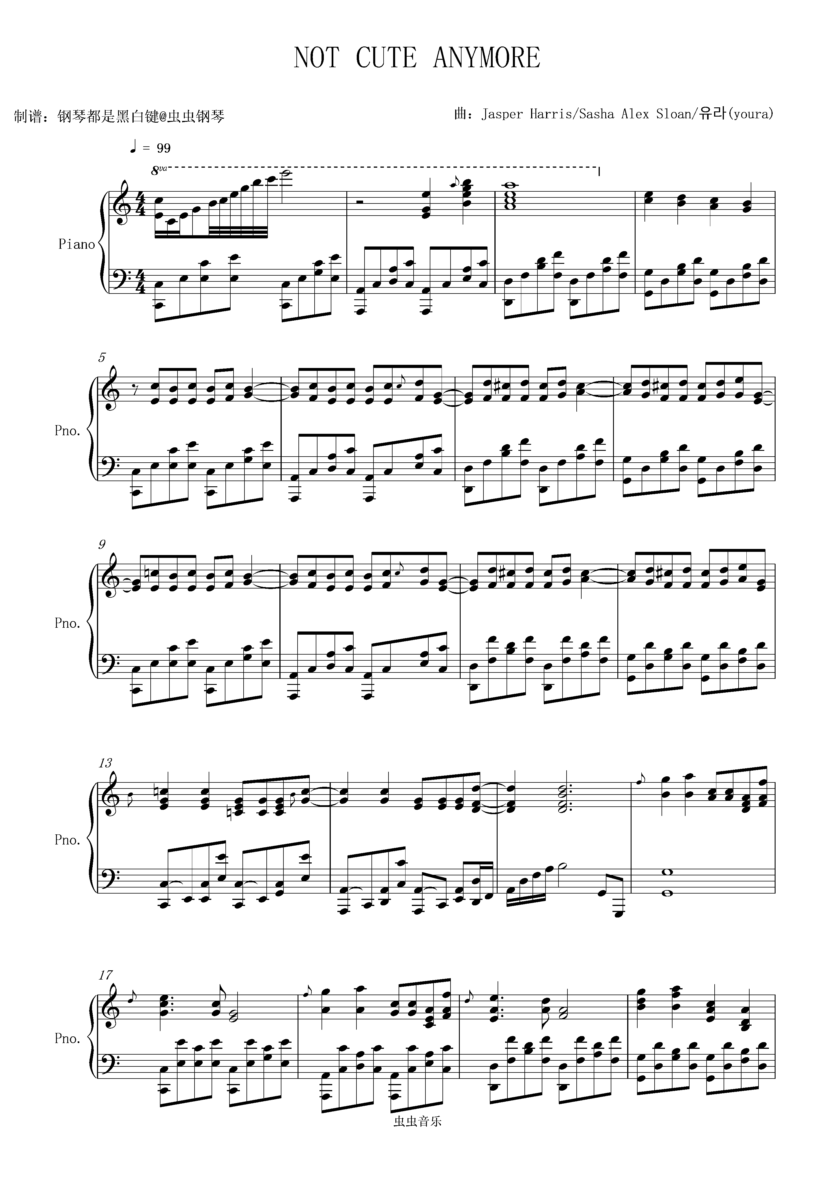 NOT CUTE ANYMORE钢琴简谱 数字双手 Jasper Harris/Sasha Alex Sloan/유라(youra)