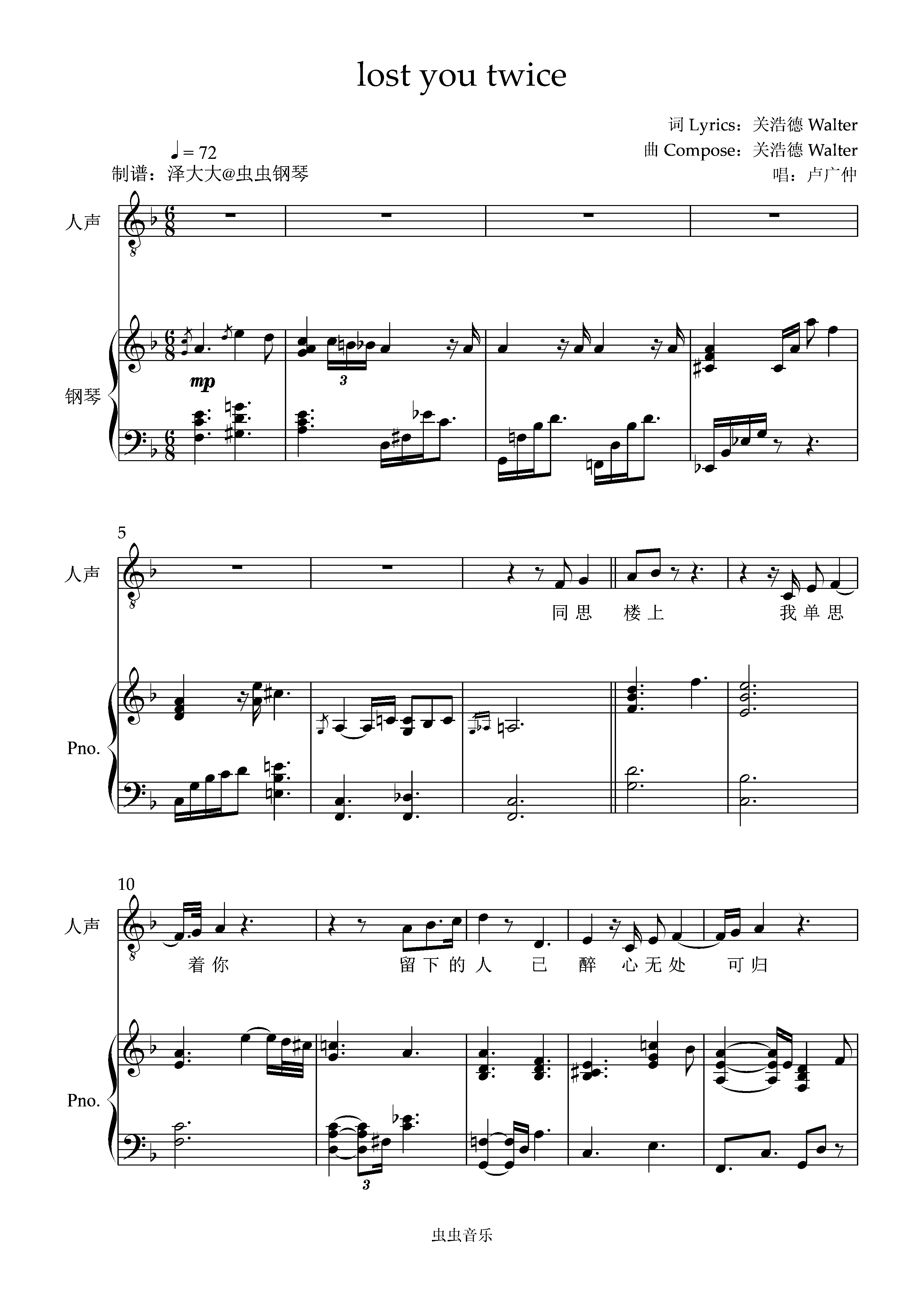 钢琴谱:lost you twice【原版弹唱附词】泽大大 卢广仲