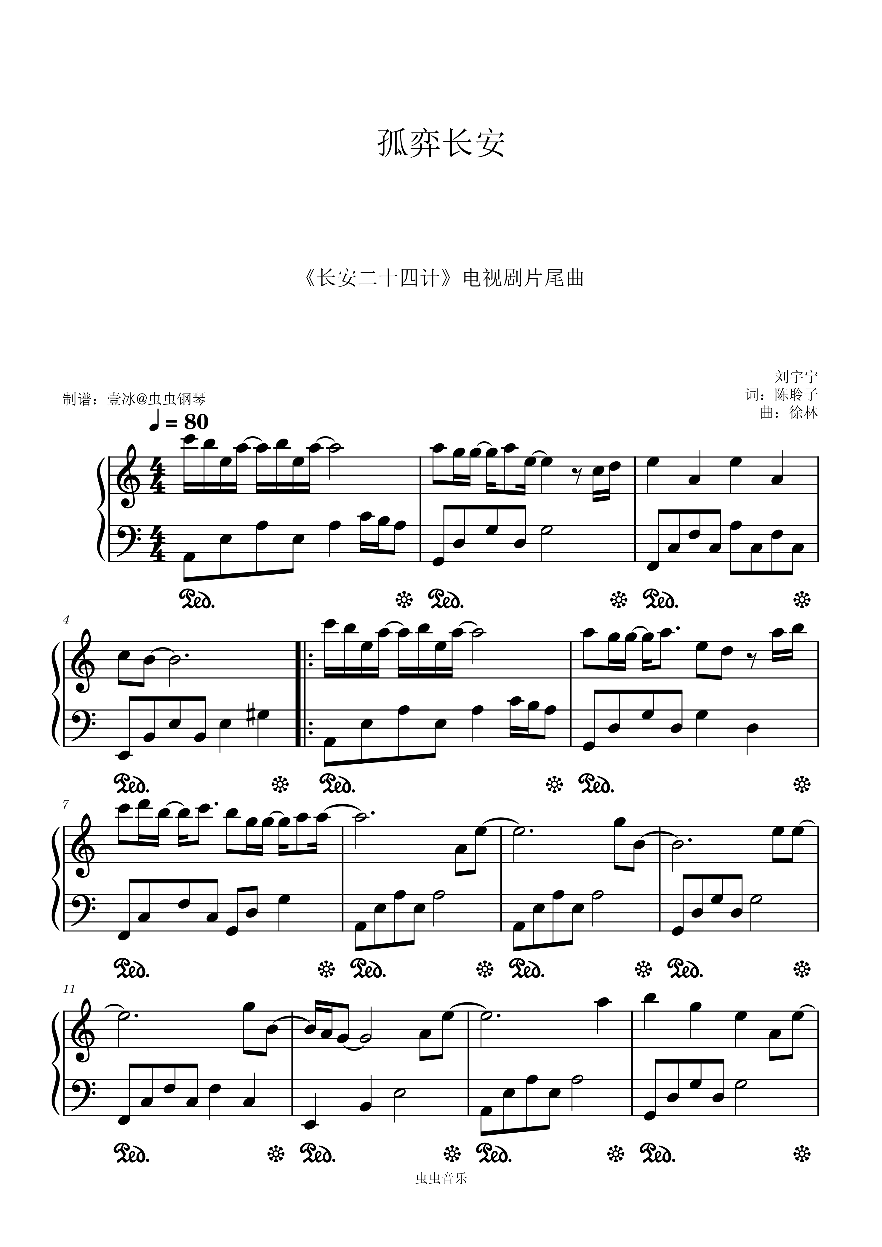 钢琴谱:孤弈长安 (《长安二十四计》电视剧命运主题曲) - C调