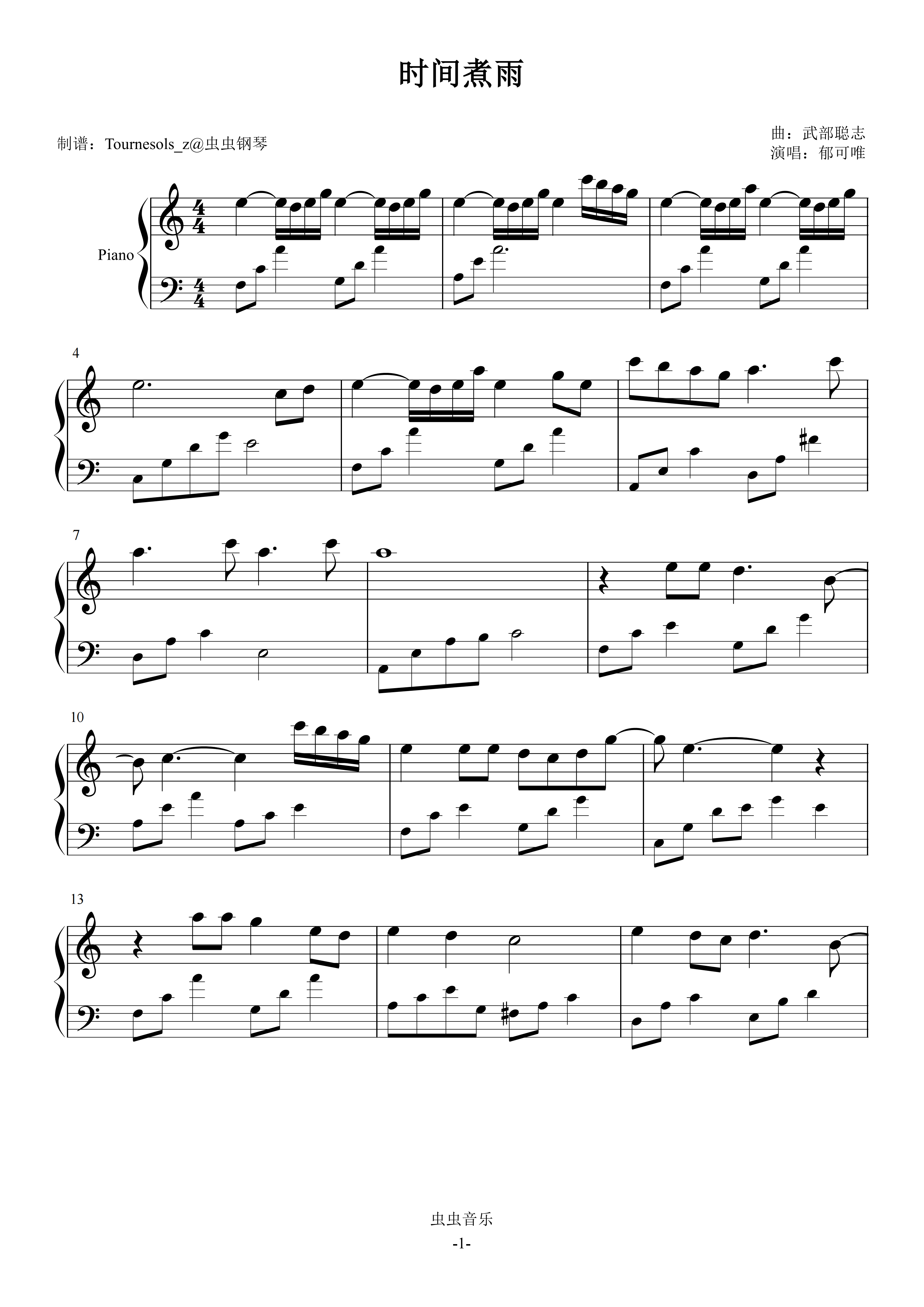 • 时间煮雨钢琴简谱 C调 数字双手 郭敬明/落落