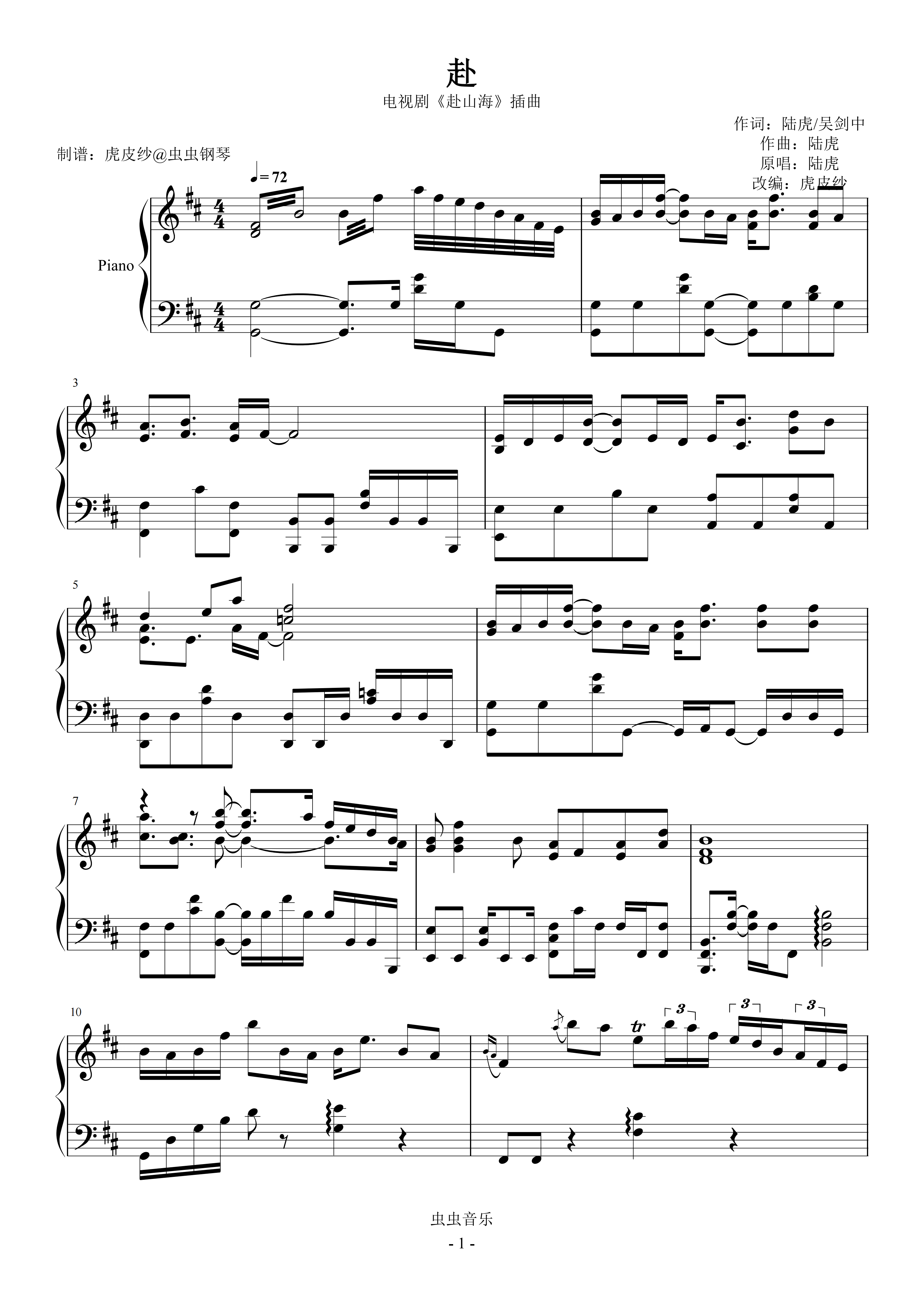 钢琴谱:赴山海插曲 赴 陆虎