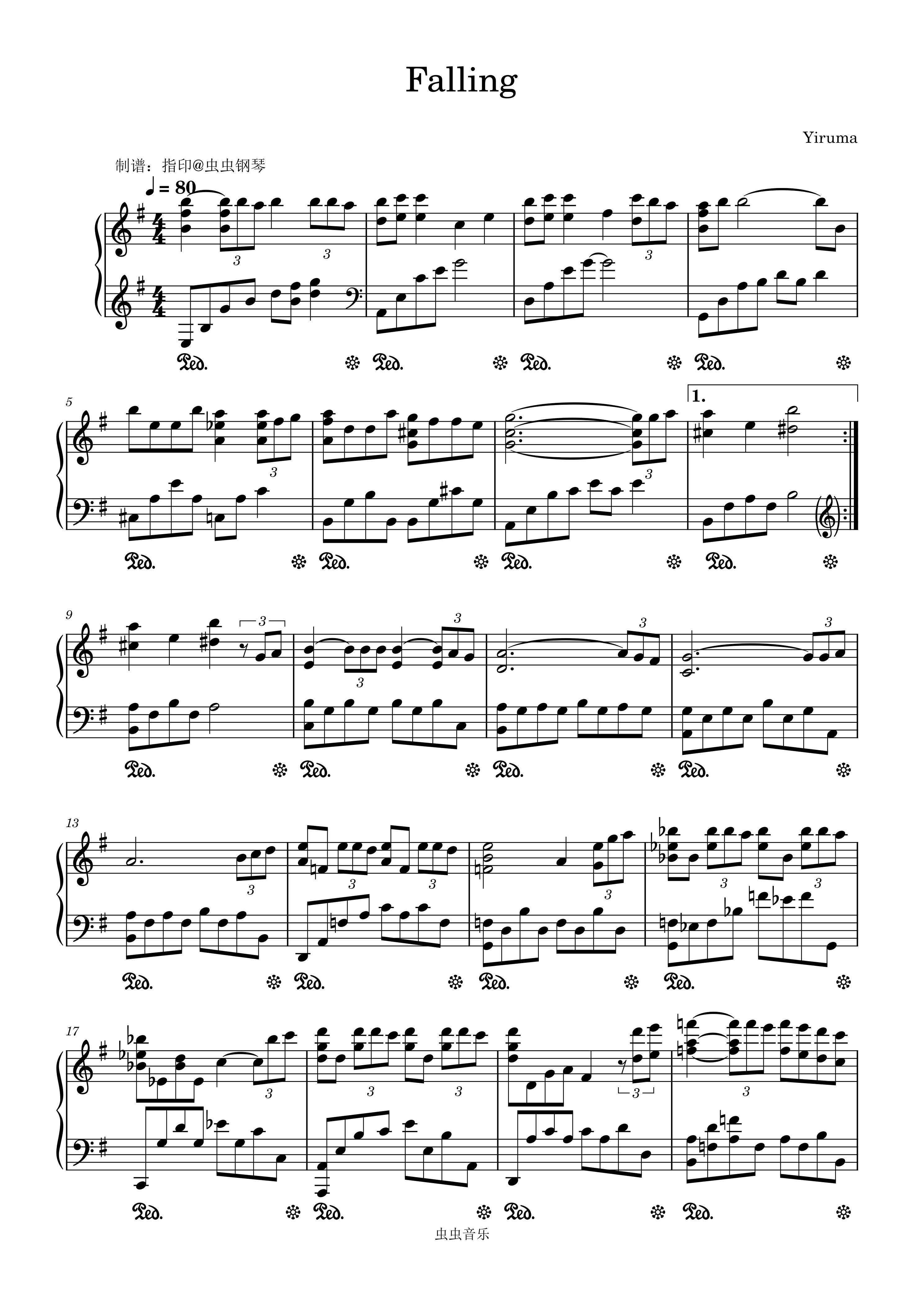 • Falling you钢琴简谱 C调 数字双手 周仁