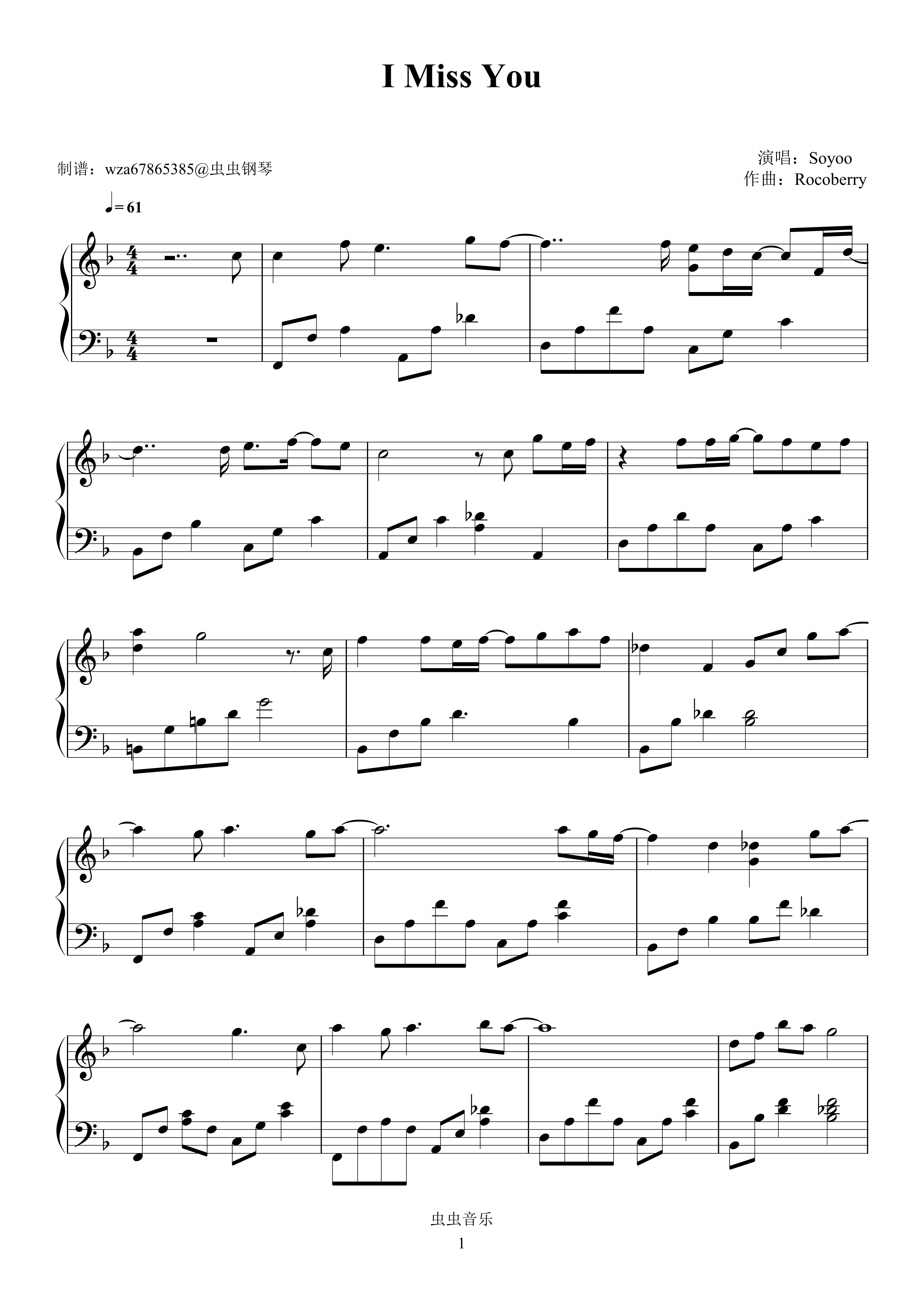 • I miss you钢琴简谱 C调 数字双手 罗百吉