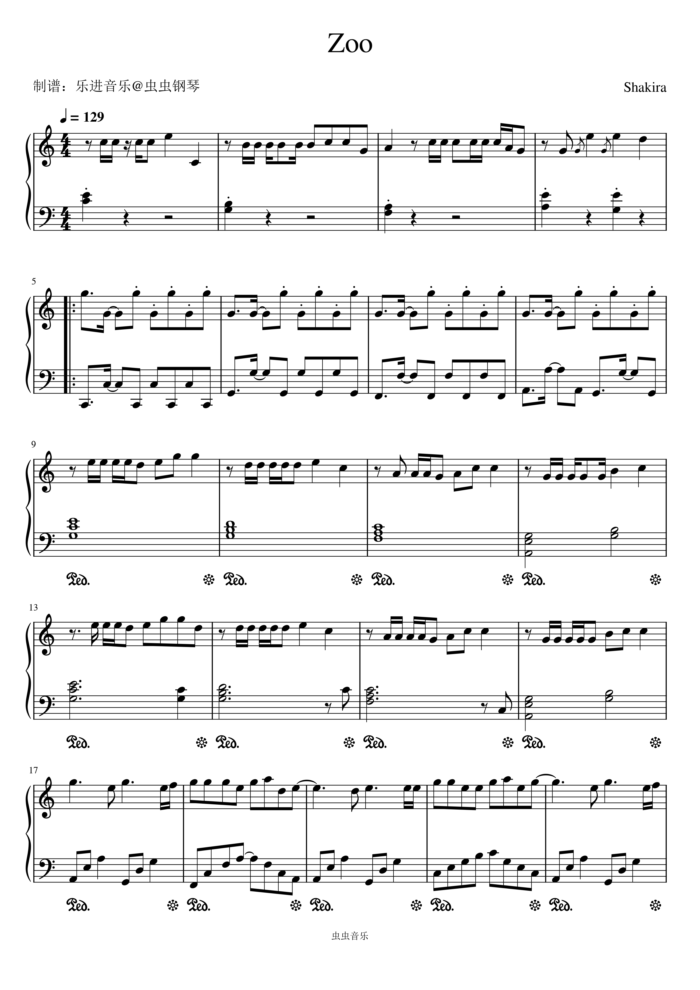 • Zoo钢琴简谱 C调 数字双手 Blake Slatkin、Shakira、Ed Sheeran