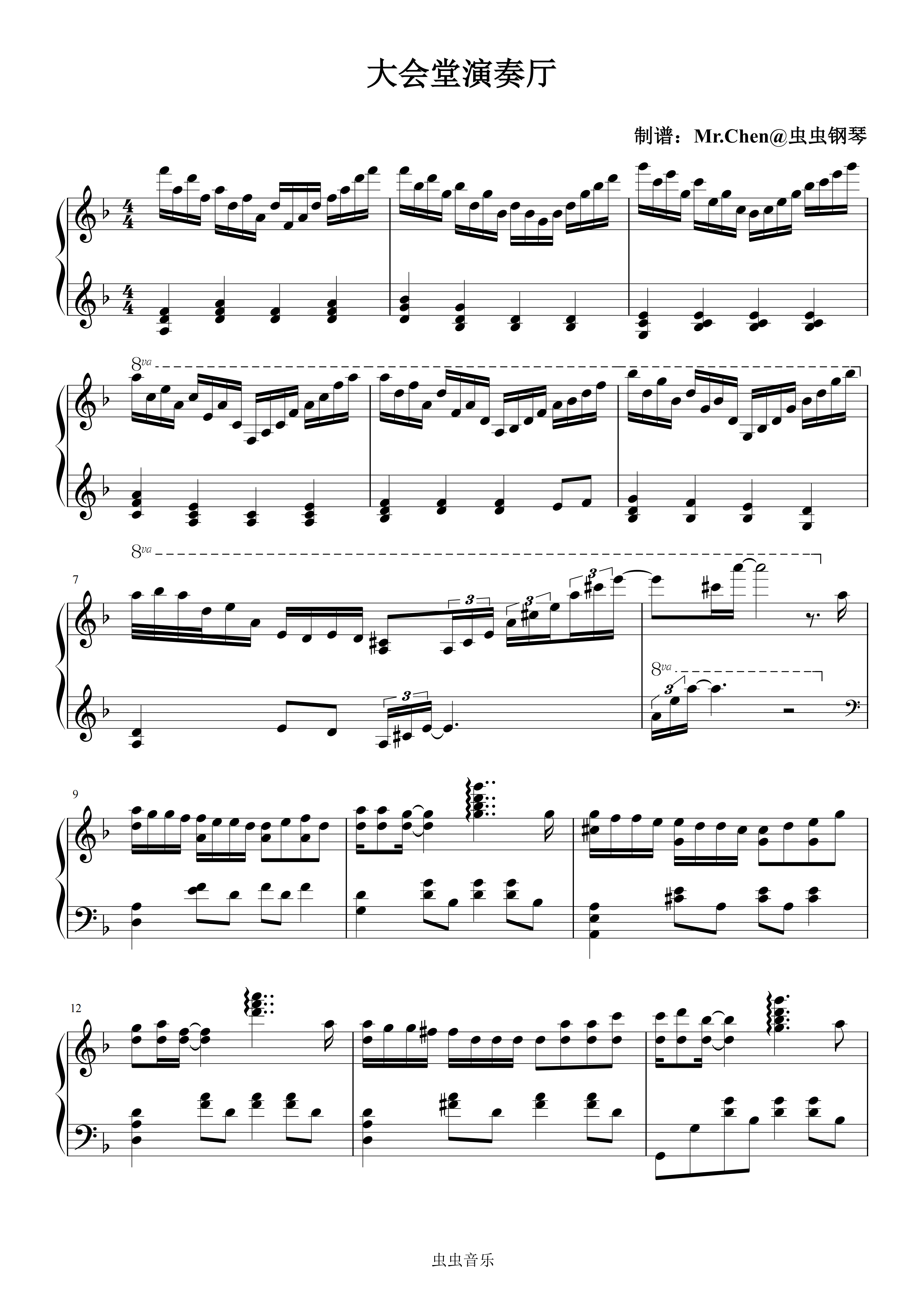 • 大会堂演奏厅钢琴简谱 F调 数字双手
