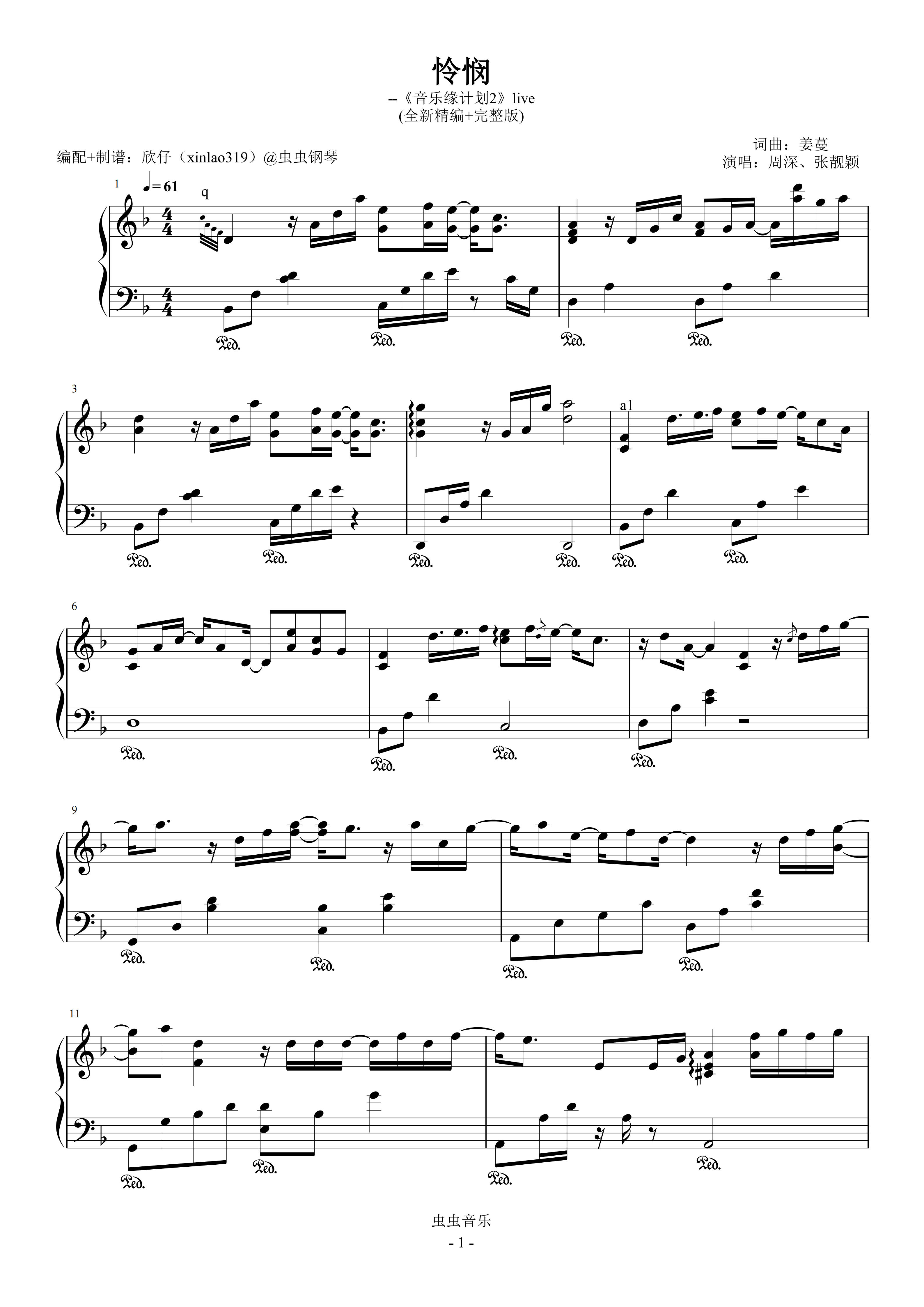 钢琴谱:怜悯(F、周深、张靓颖《音乐缘计划2》live、完整版)