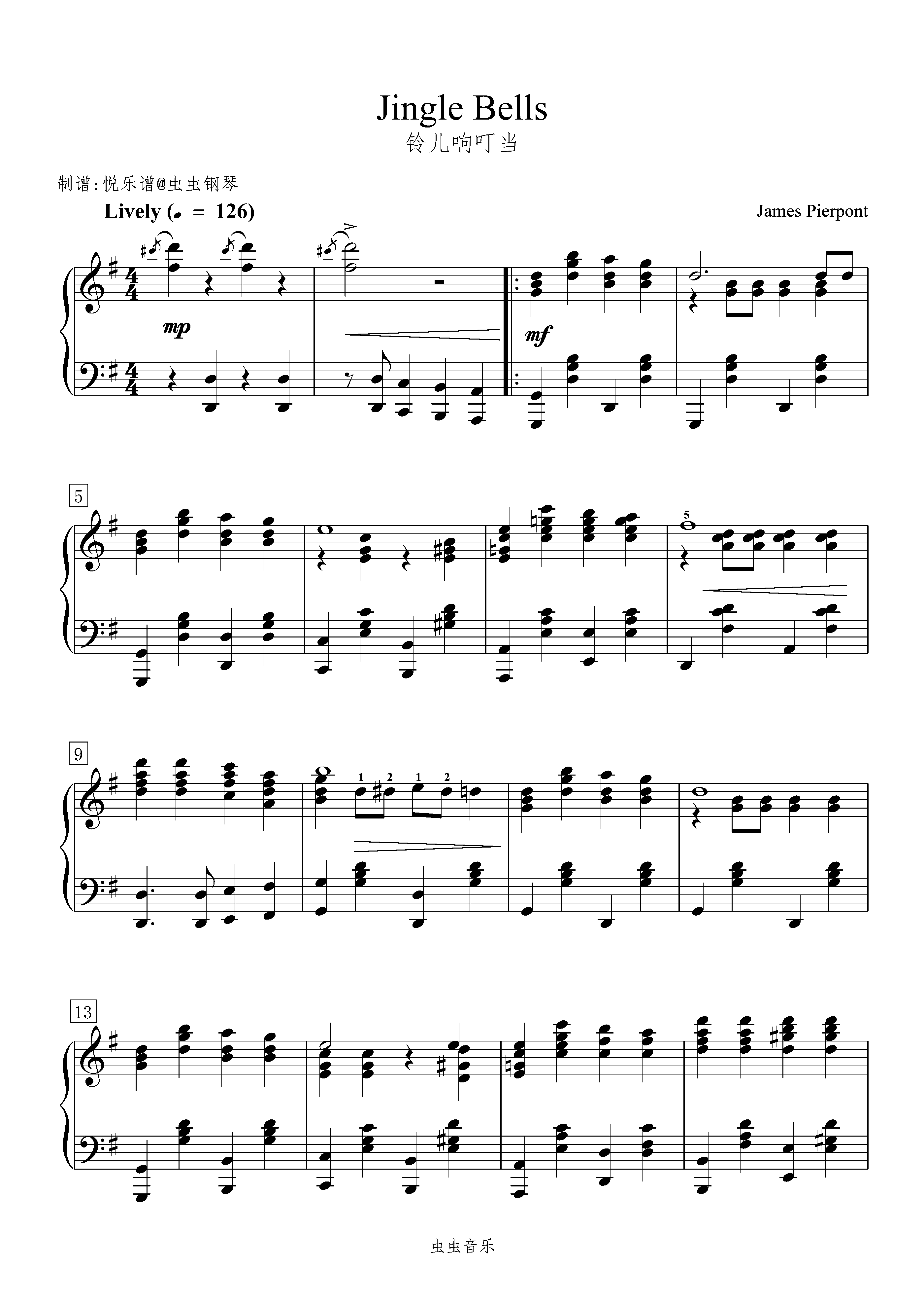 钢琴谱:铃儿响叮当/Jingle Bells 【愉快】