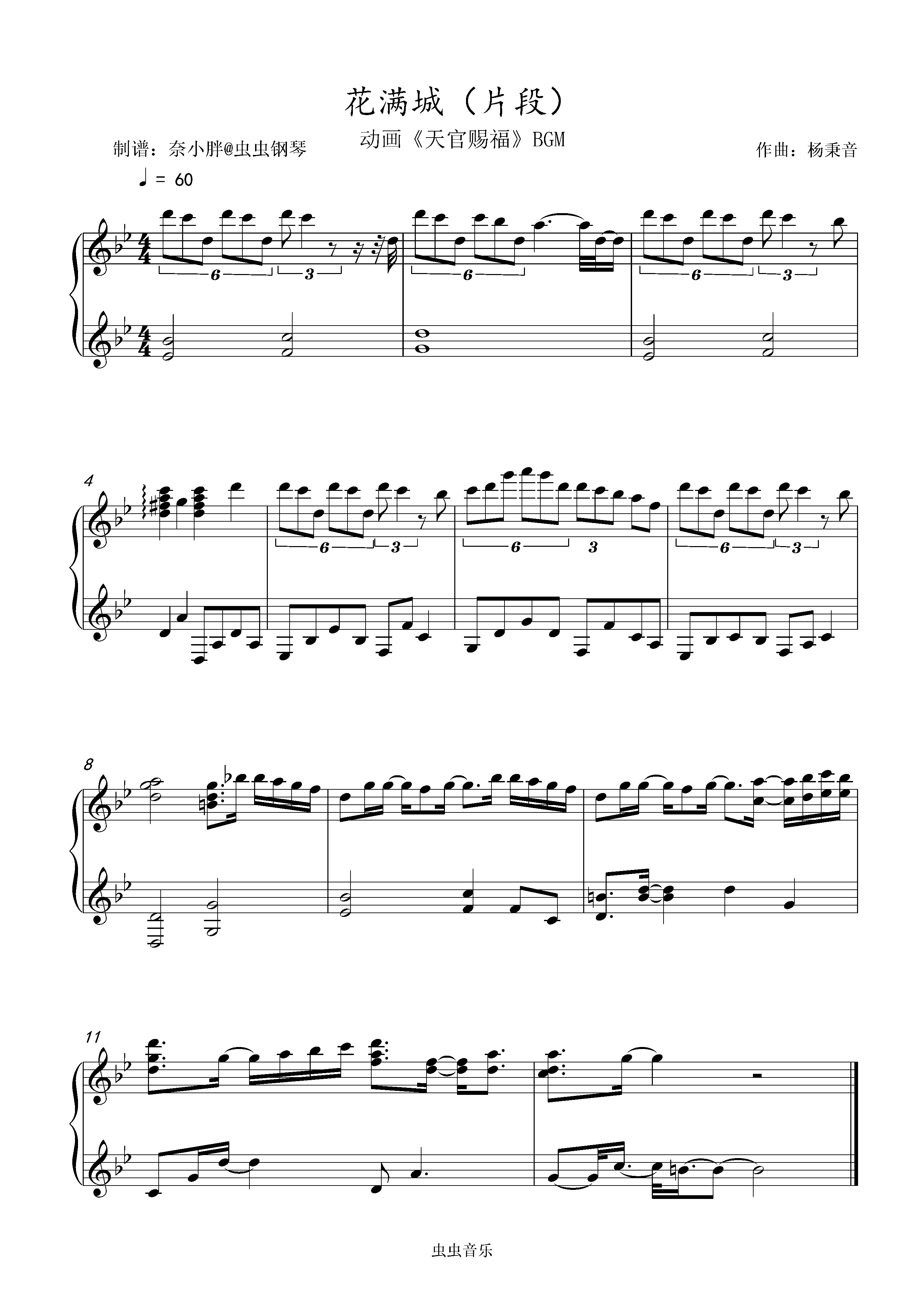 钢琴谱:花满城-片段-动画《天官赐福》BGM