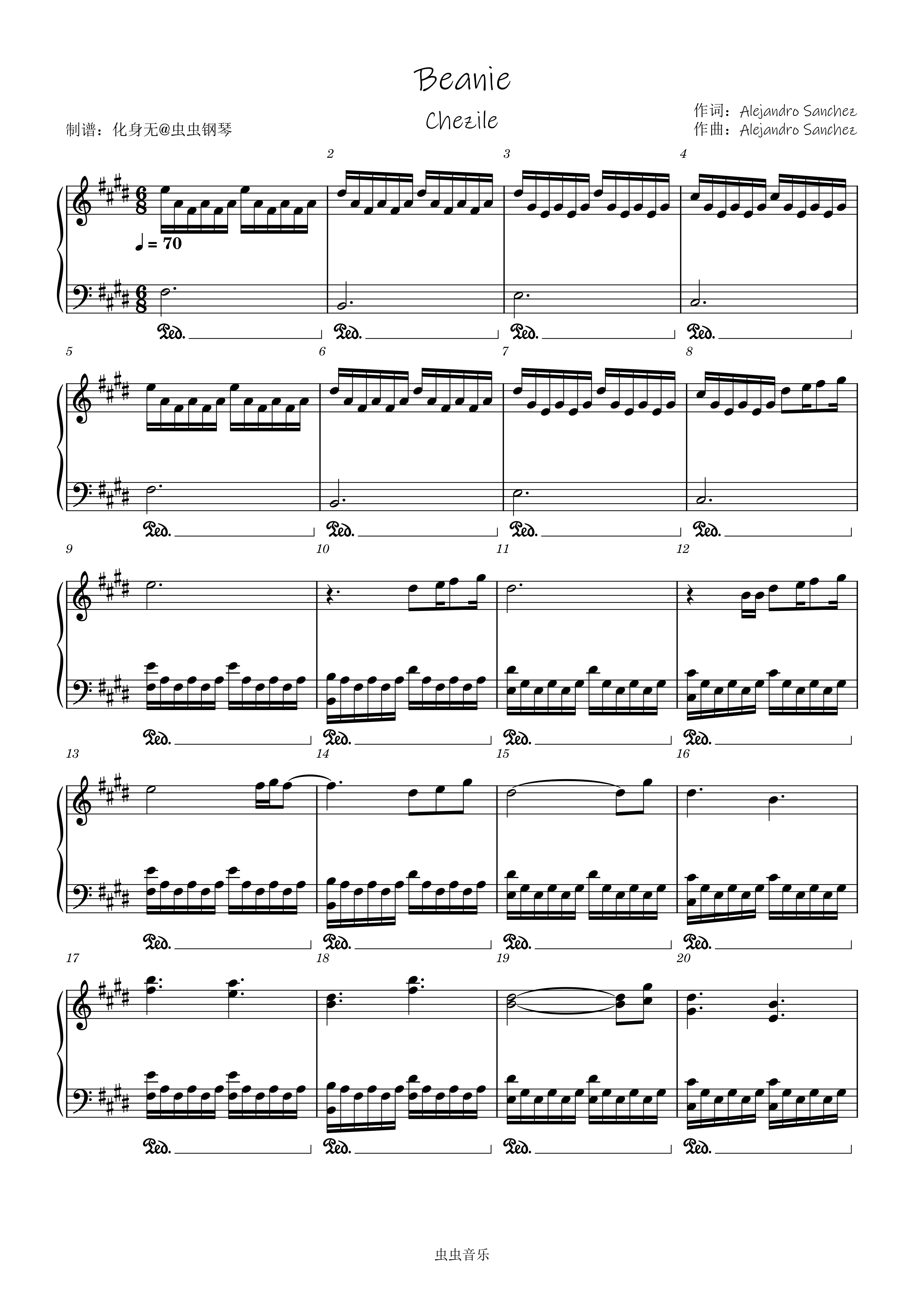 钢琴谱:Beanie 原调独奏版 化身无编配