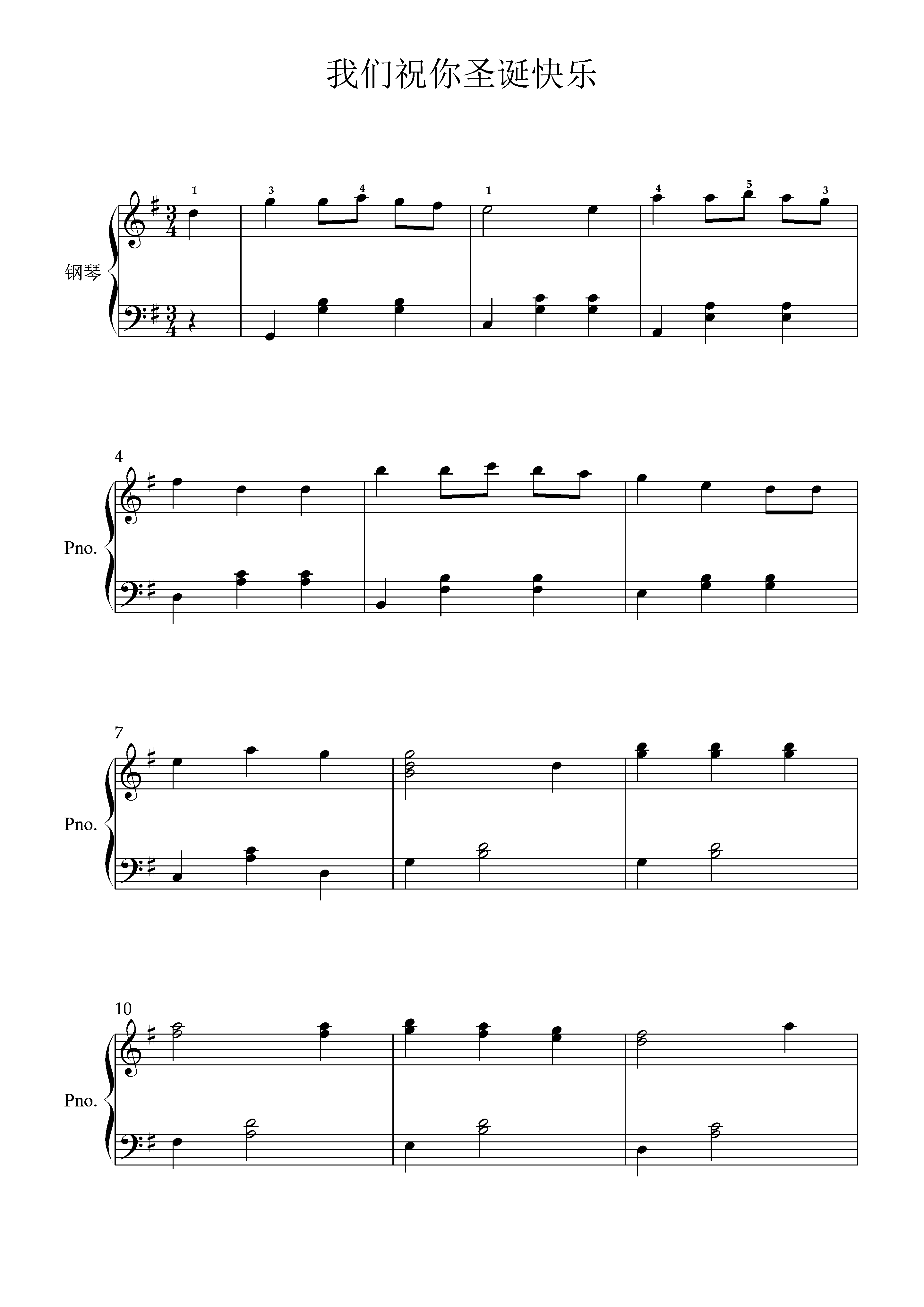 我们祝你圣诞快乐钢琴简谱 数字双手